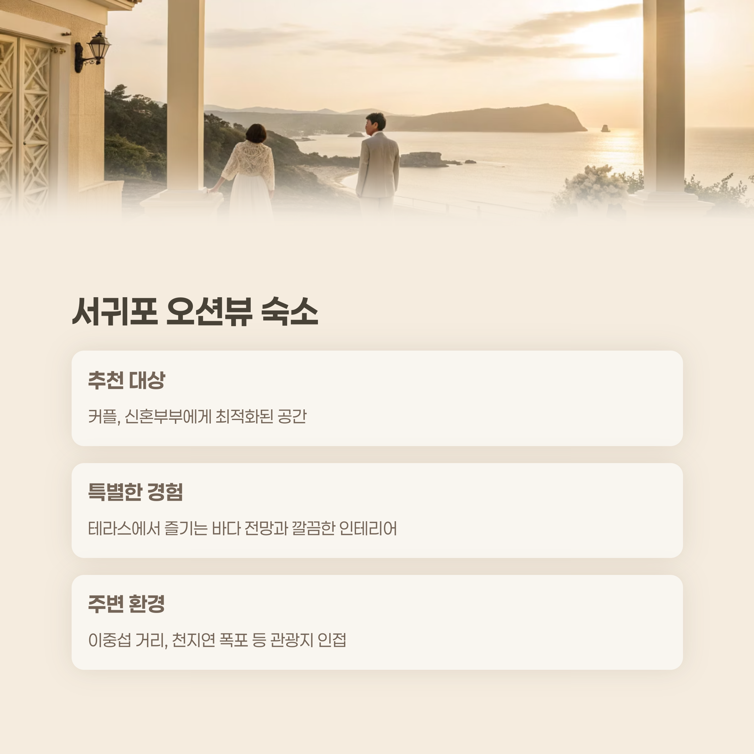 | 오션뷰 | 서귀포 | 전망, 관광지 인접 | 비교적 고가 |