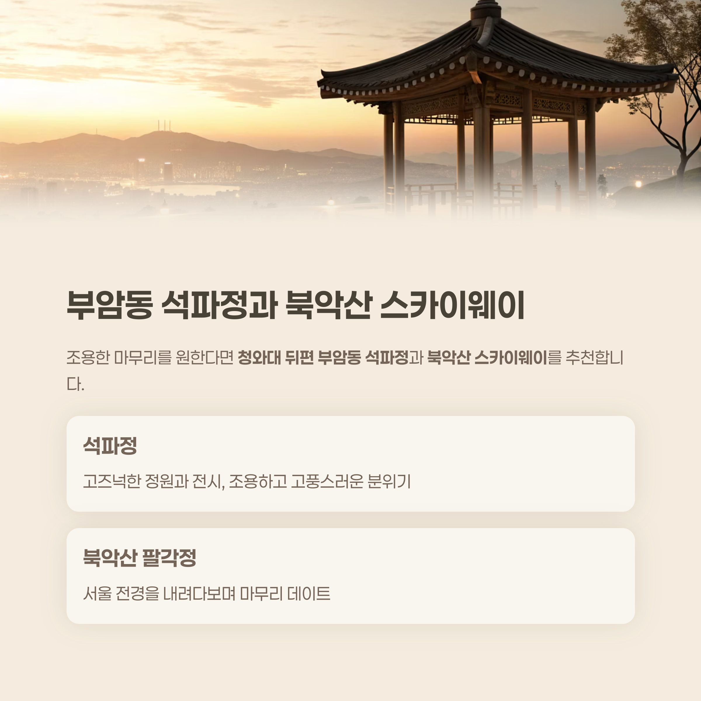 Step 5. 마무리 감성 코스: 부암동 석파정과 북악산 스카이웨이