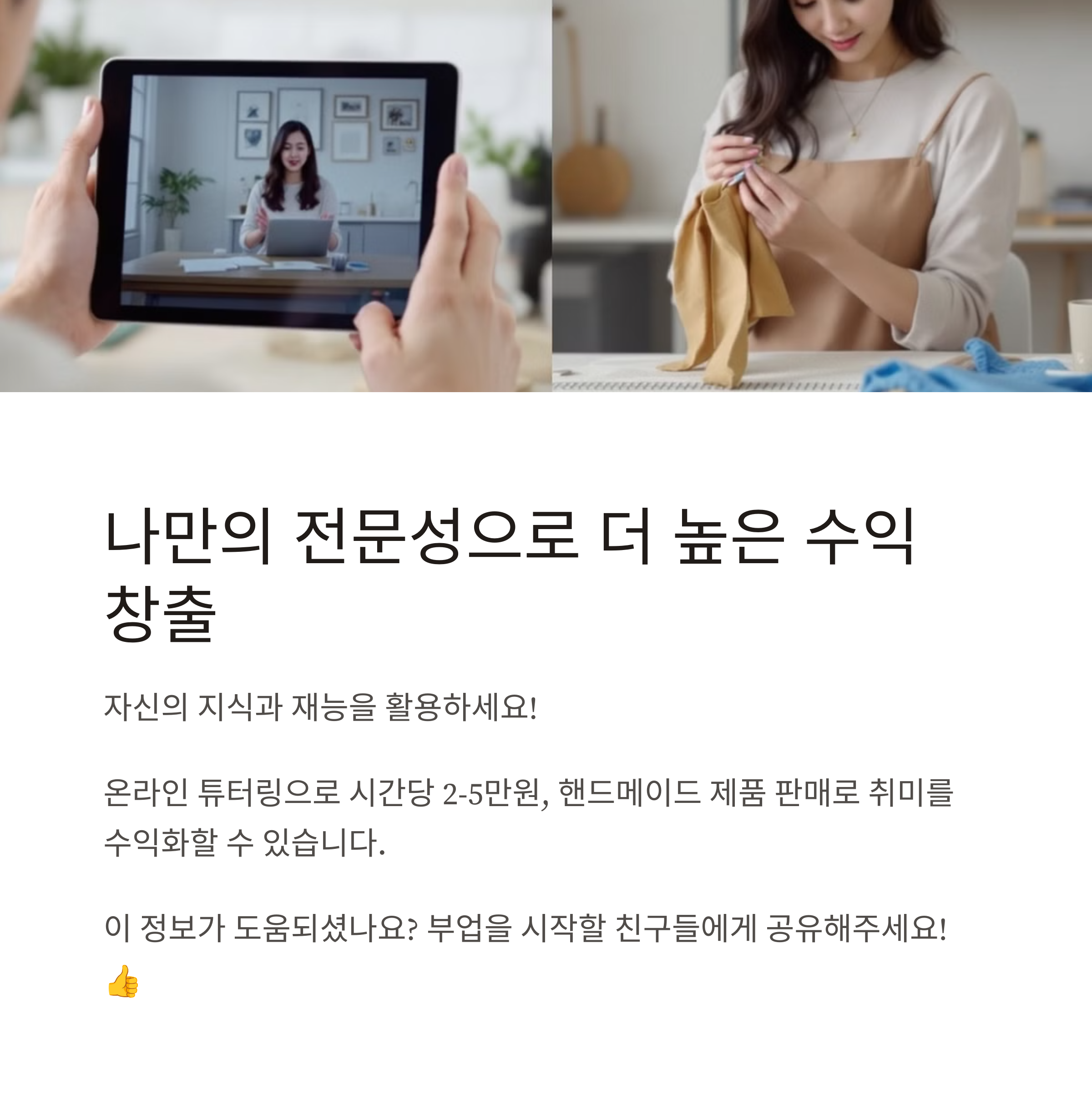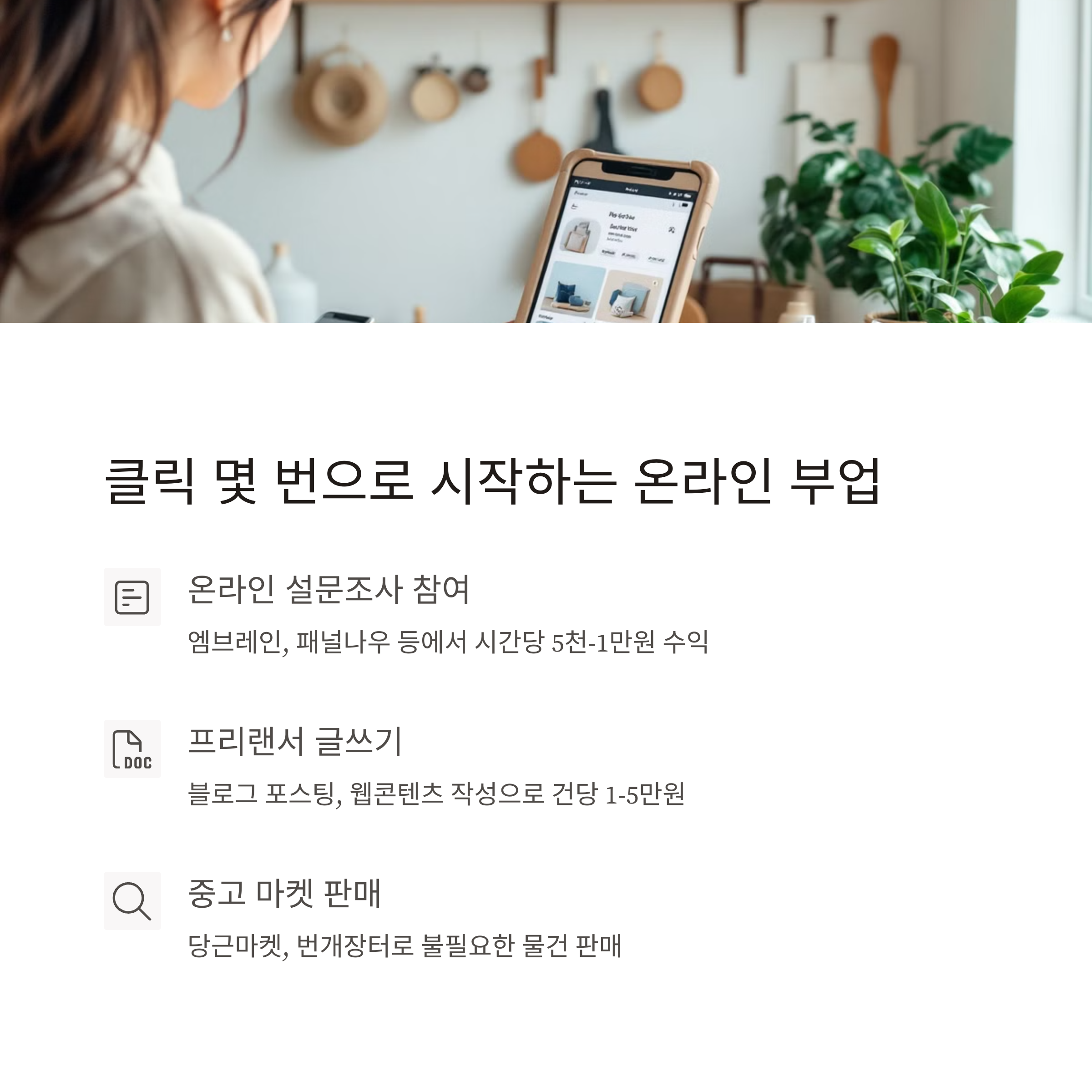 큰 부담 없이 누구나 시작할 수 있어요. 소소한 용돈 벌이로 딱 좋습니다.