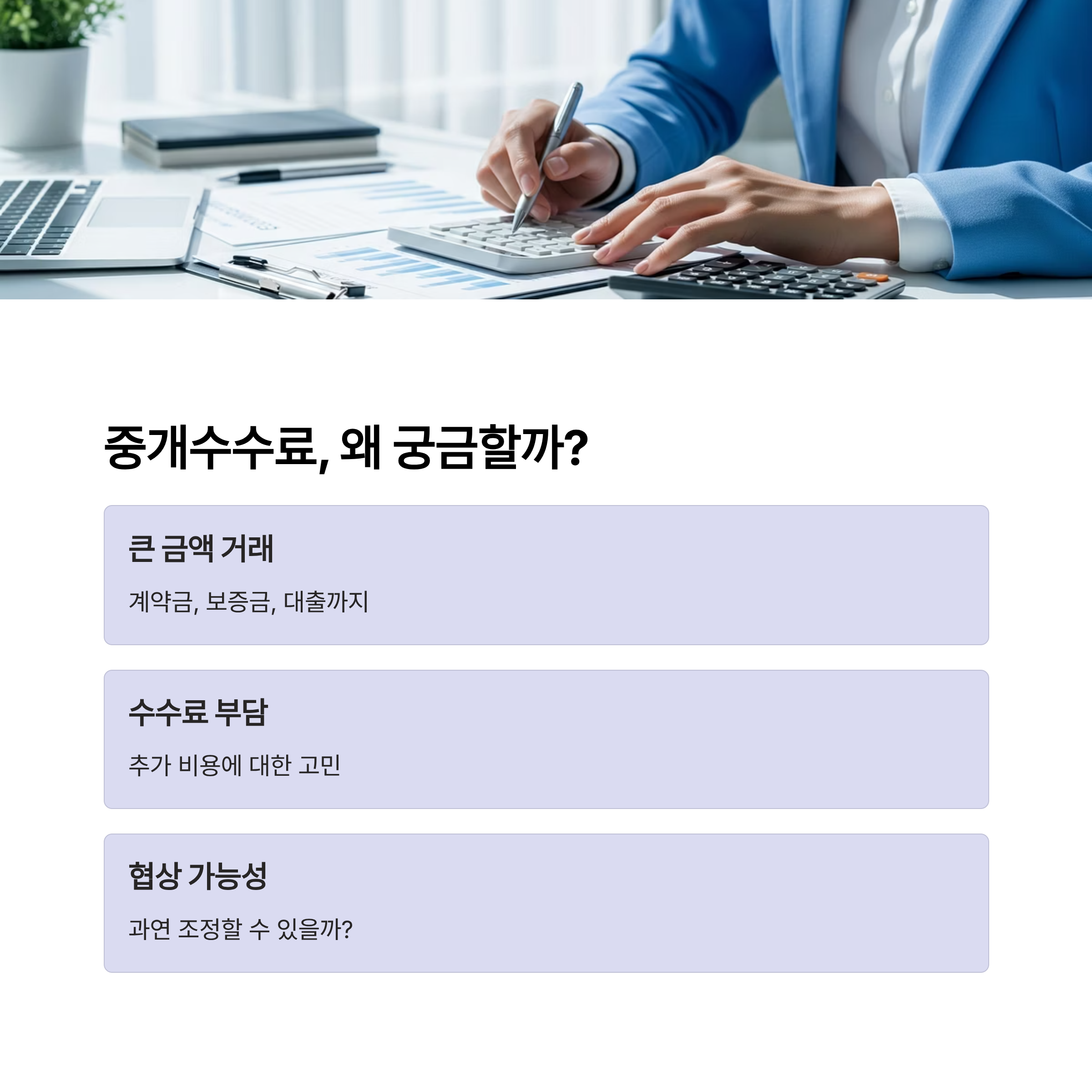 계약금과 보증금, 대출 등 큰 금액이 오가는 상황에서 수수료까지 신경 쓰이다 보니,