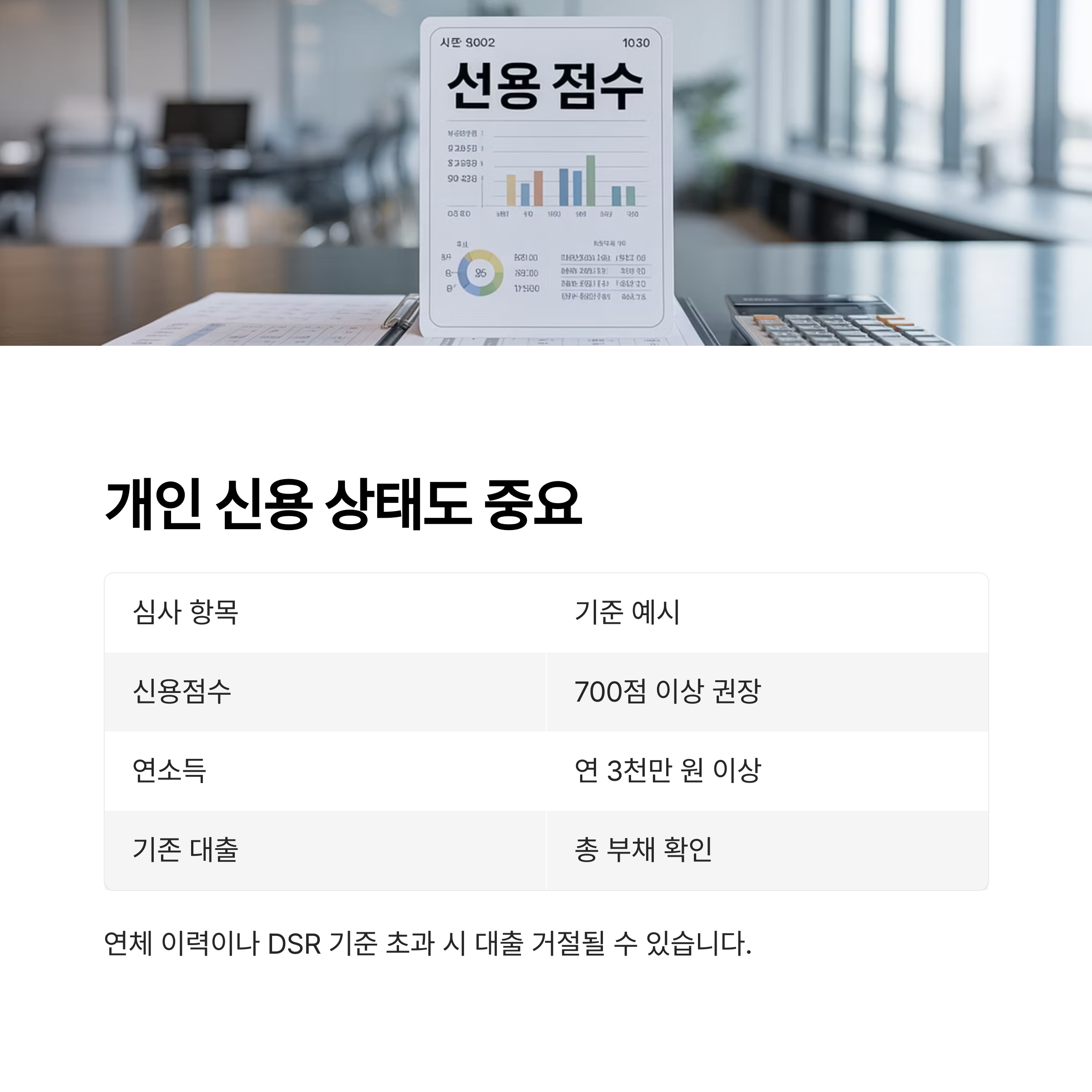 특히 연체 이력이나 DSR(총부채원리금상환비율) 기준 초과 시