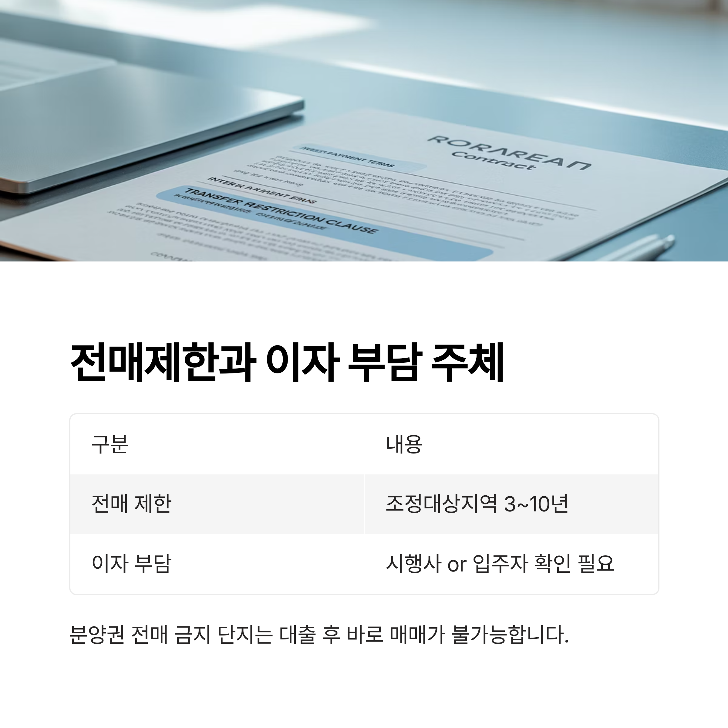 7. 전매제한과 대출 상환 조건도 체크