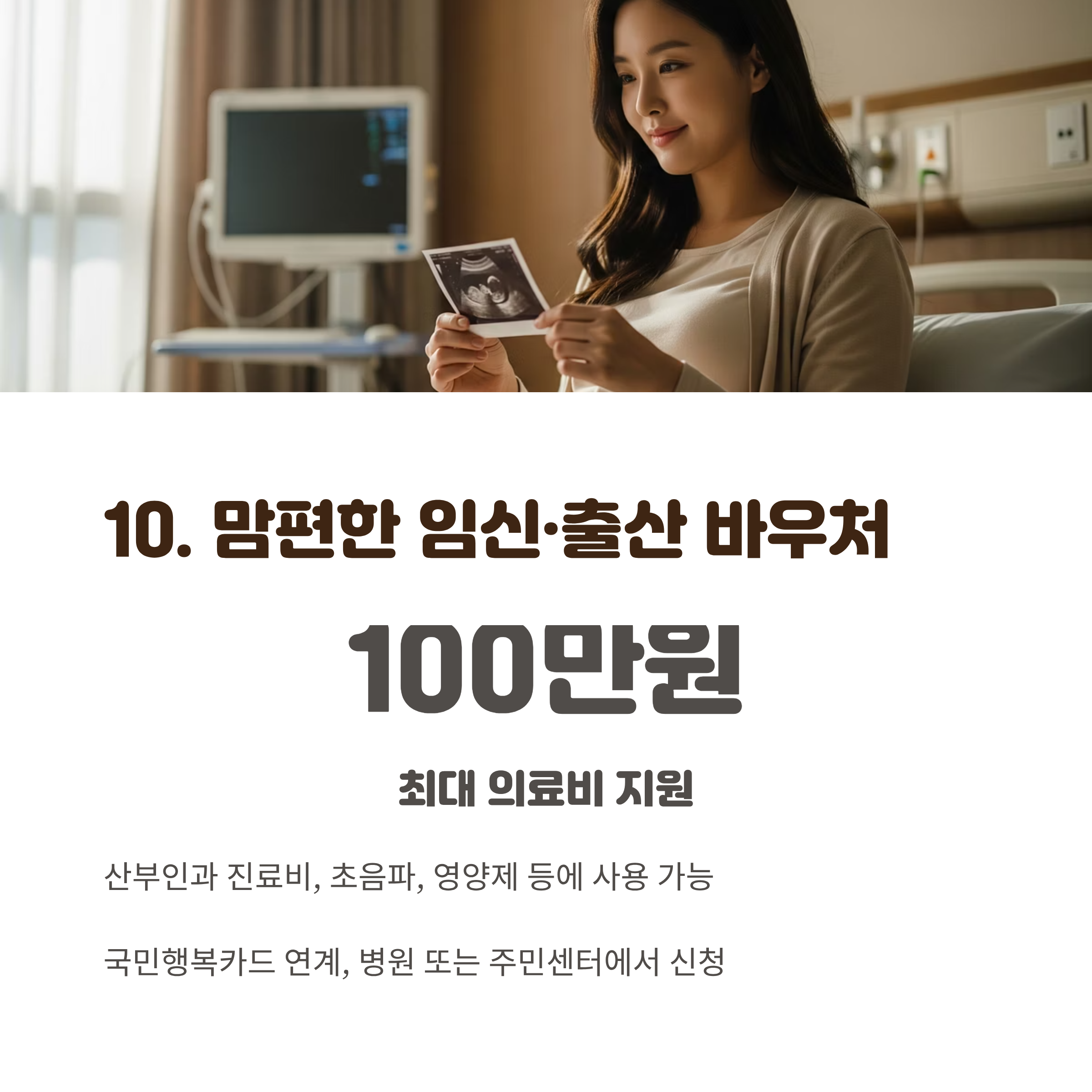 10. 맘편한 임신·출산 바우처 – 최대 100만 원 의료비 지원