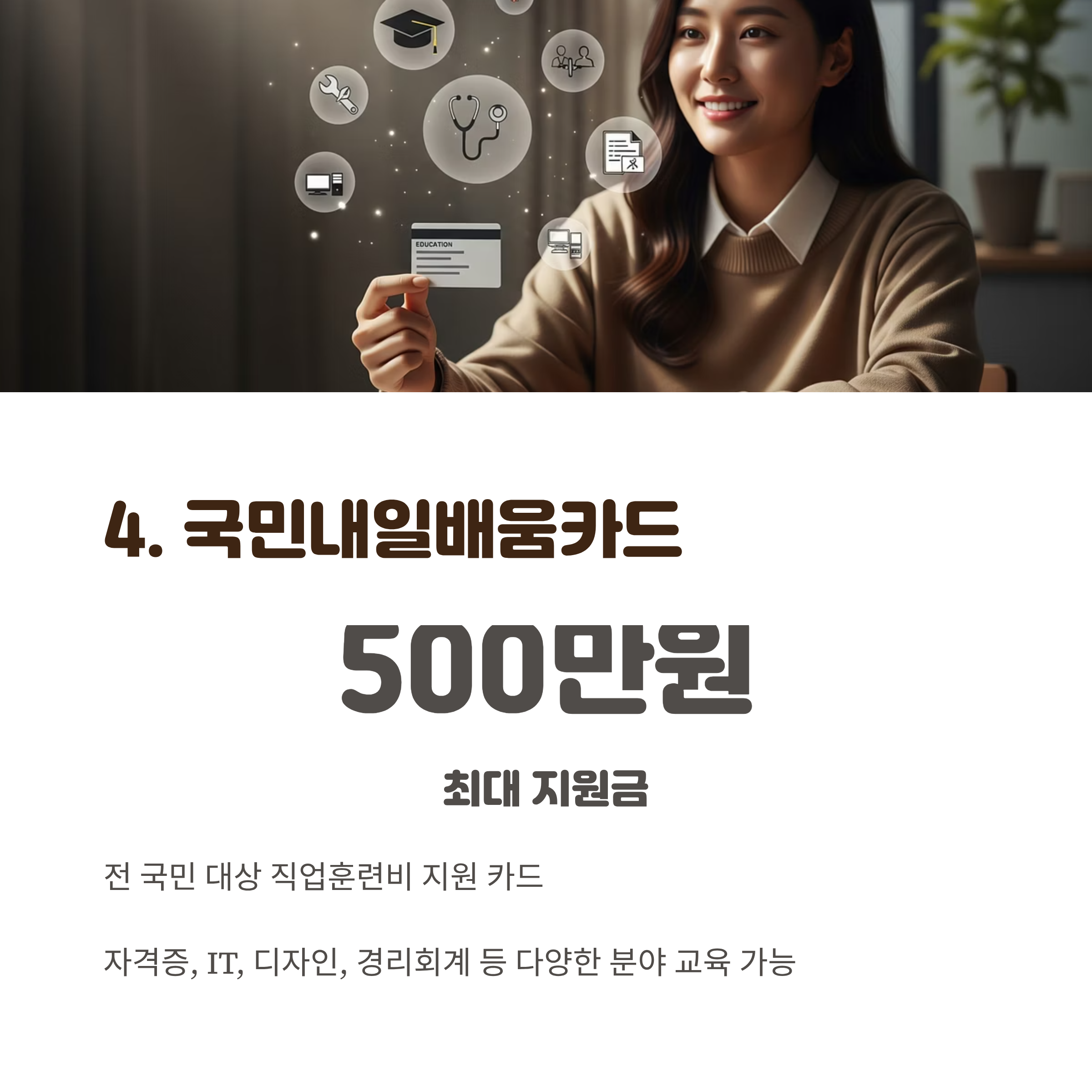 4. 국민내일배움카드 – 전 국민 대상 직업훈련비 최대 500만 원