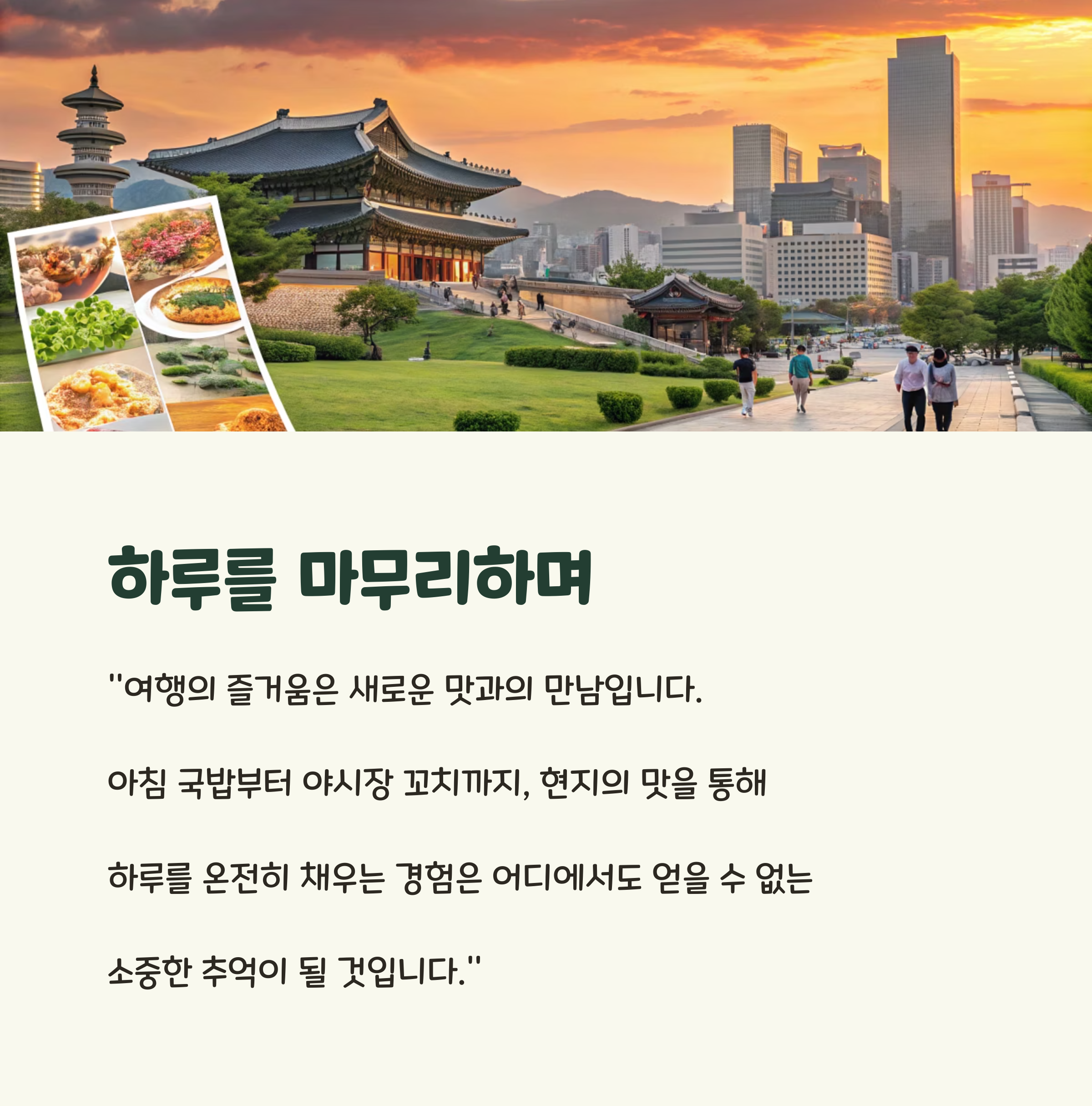 하루를 마무리하며: 먹방 여행의 진정한 매력 (마무리 요약)