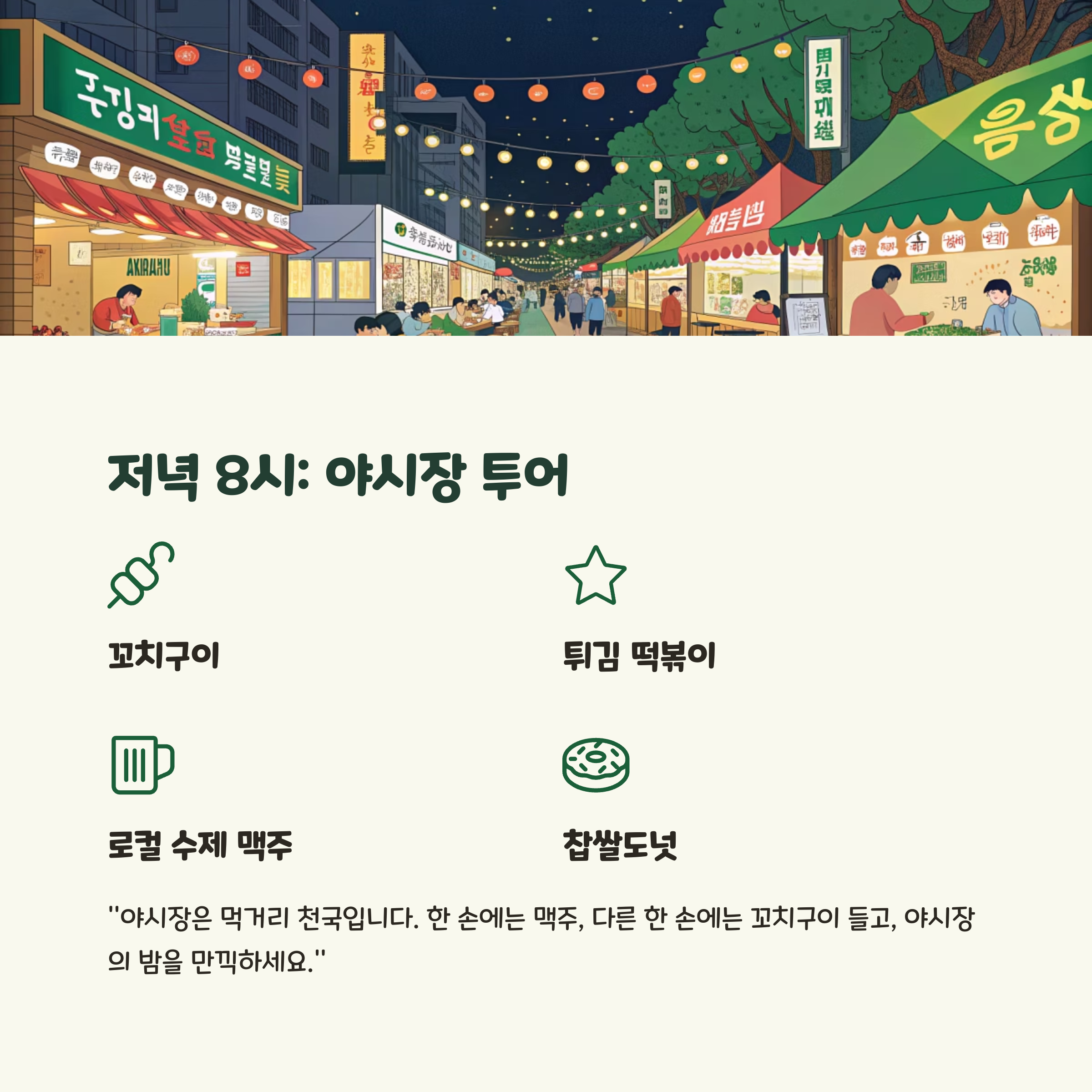 저녁 8시: 야시장 투어 - 현지 야식 즐기기 (예시 형식)