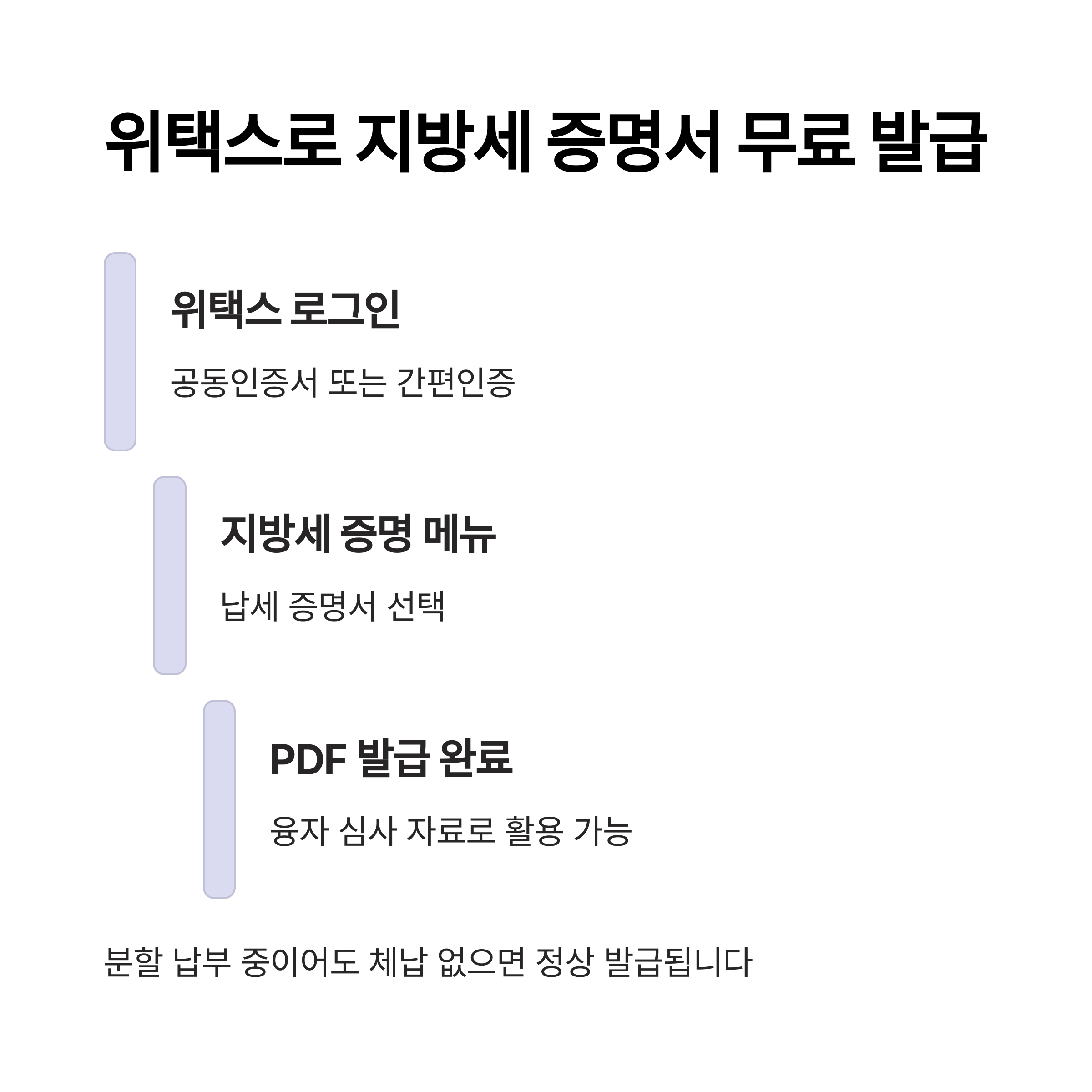 | 지방세 납세 증명 | 위택스 | 무료 | 간편인증 가능 |