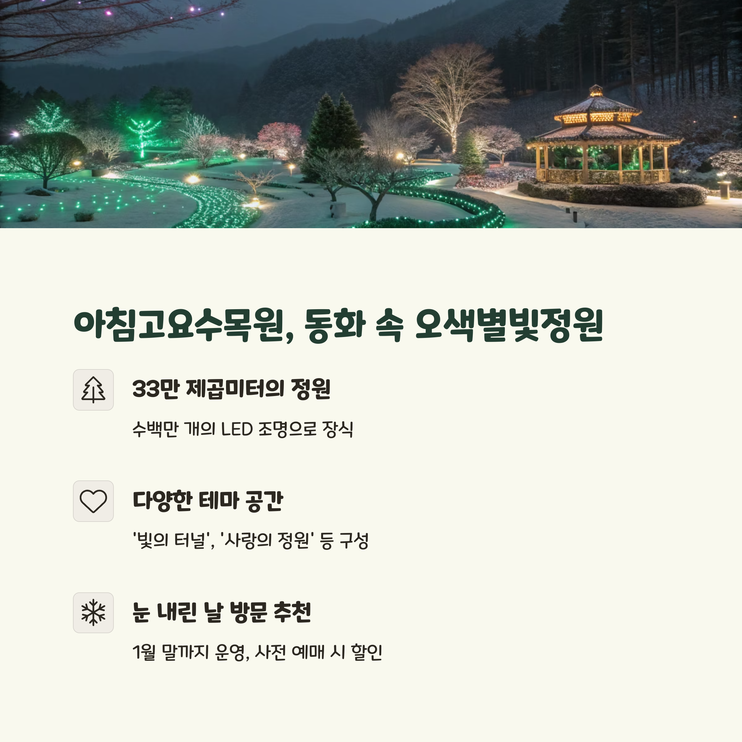 | 경기 | 아침고요수목원 | 12월~2월 |