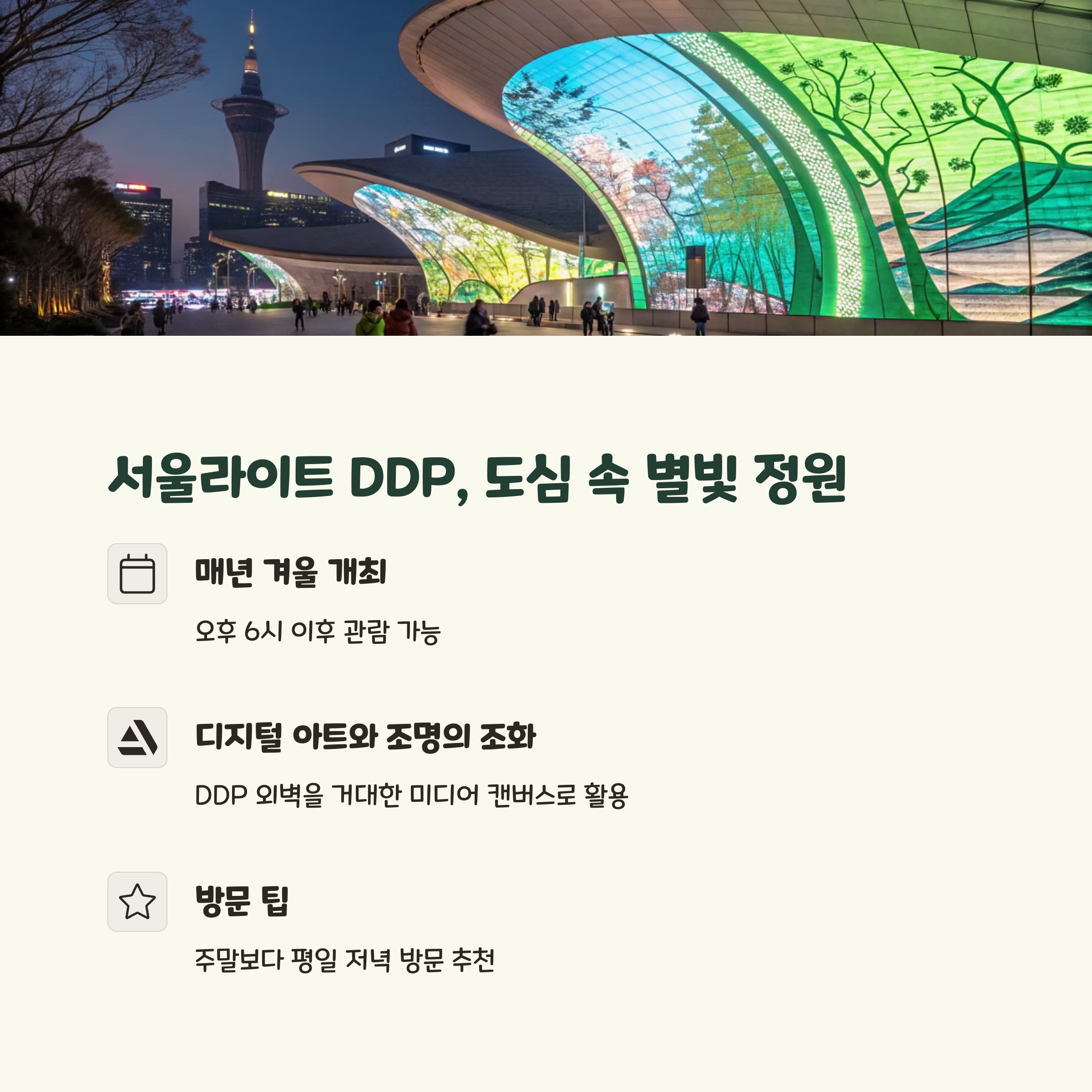| 서울 | DDP 서울라이트 | 12월~1월 |