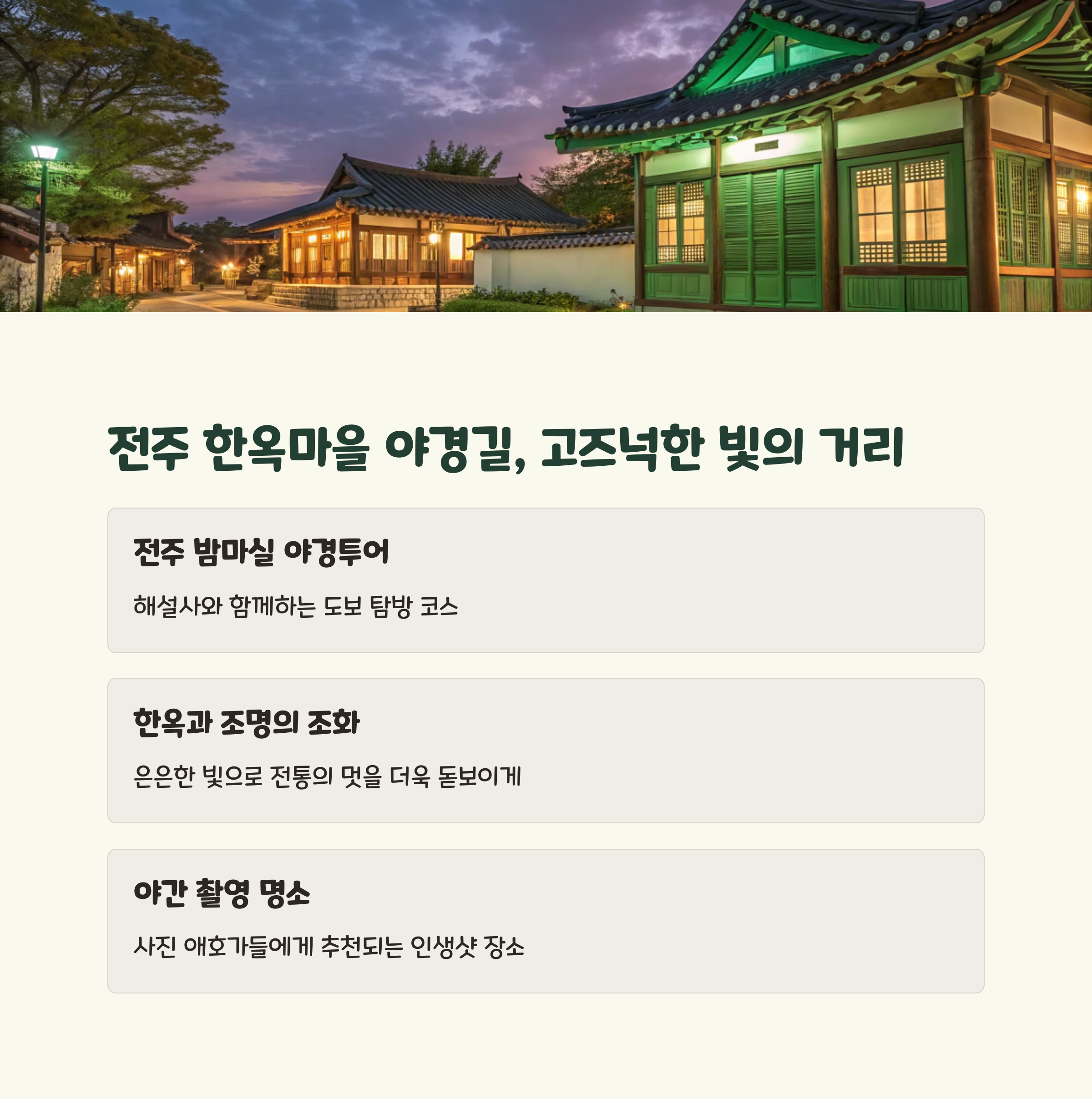 | 전주 | 한옥마을 야경길 | 계절별 |