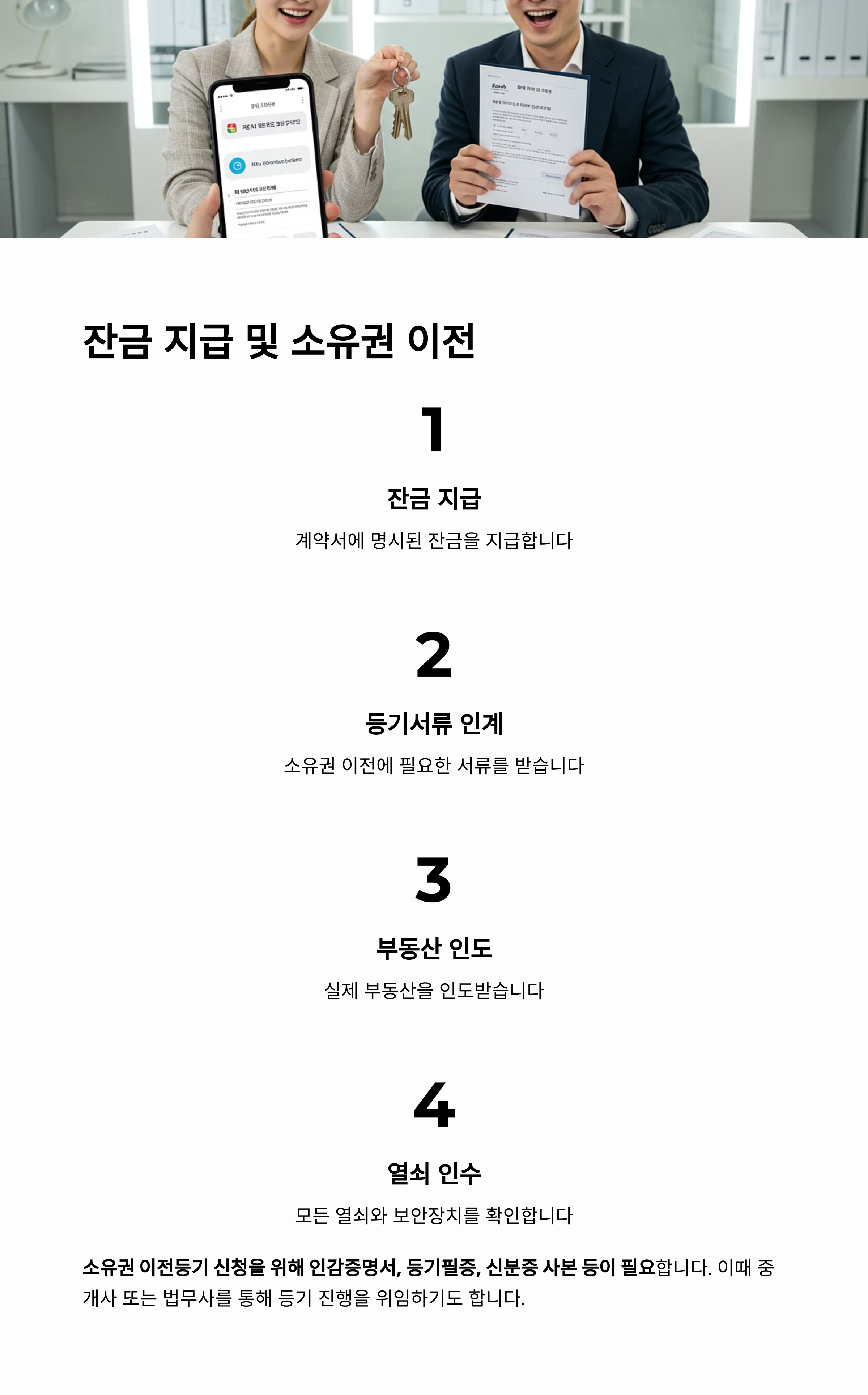 잔금일에는 다음 네 가지가 동시에 이뤄집니다: