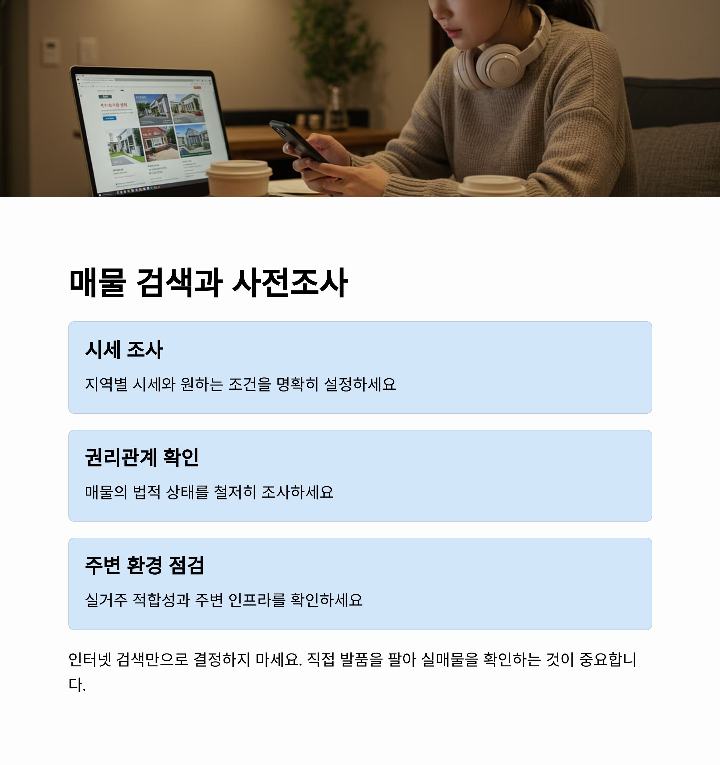 이때 확인해야 할 핵심은 매물의 권리관계, 주변 환경, 실거주 적합성입니다.