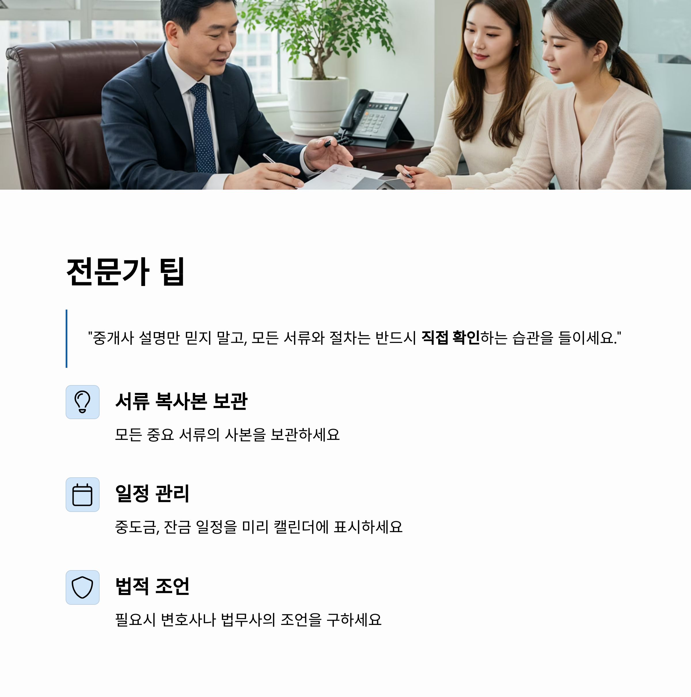 모든 서류와 절차는 반드시 직접 확인하는 습관을 들이세요."