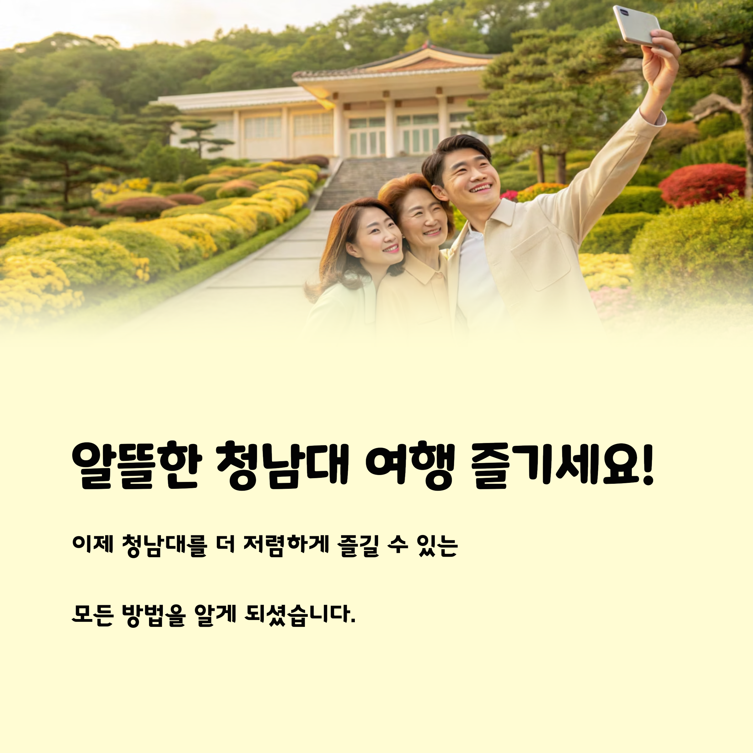 이 글에서는 청남대 입장료를 절약할 수 있는 모든 합리적인 방법을 총정리하여 소개합니다. 가족, 연인, 친구와의 여행에서 알뜰하고 똑똑하게 청남대를 즐길 수 있도록 도와드릴게요.