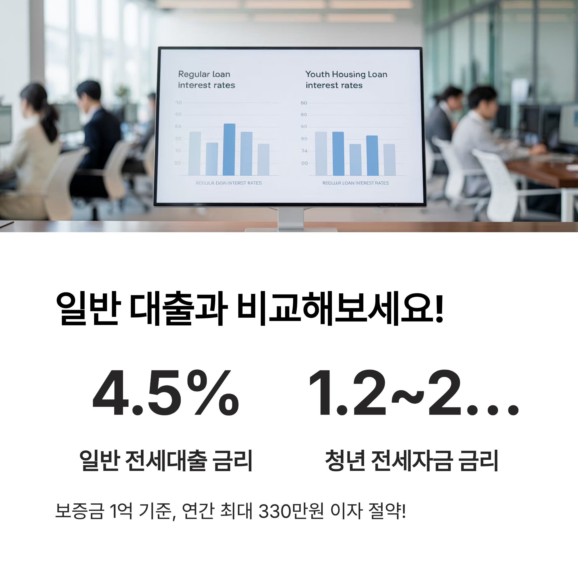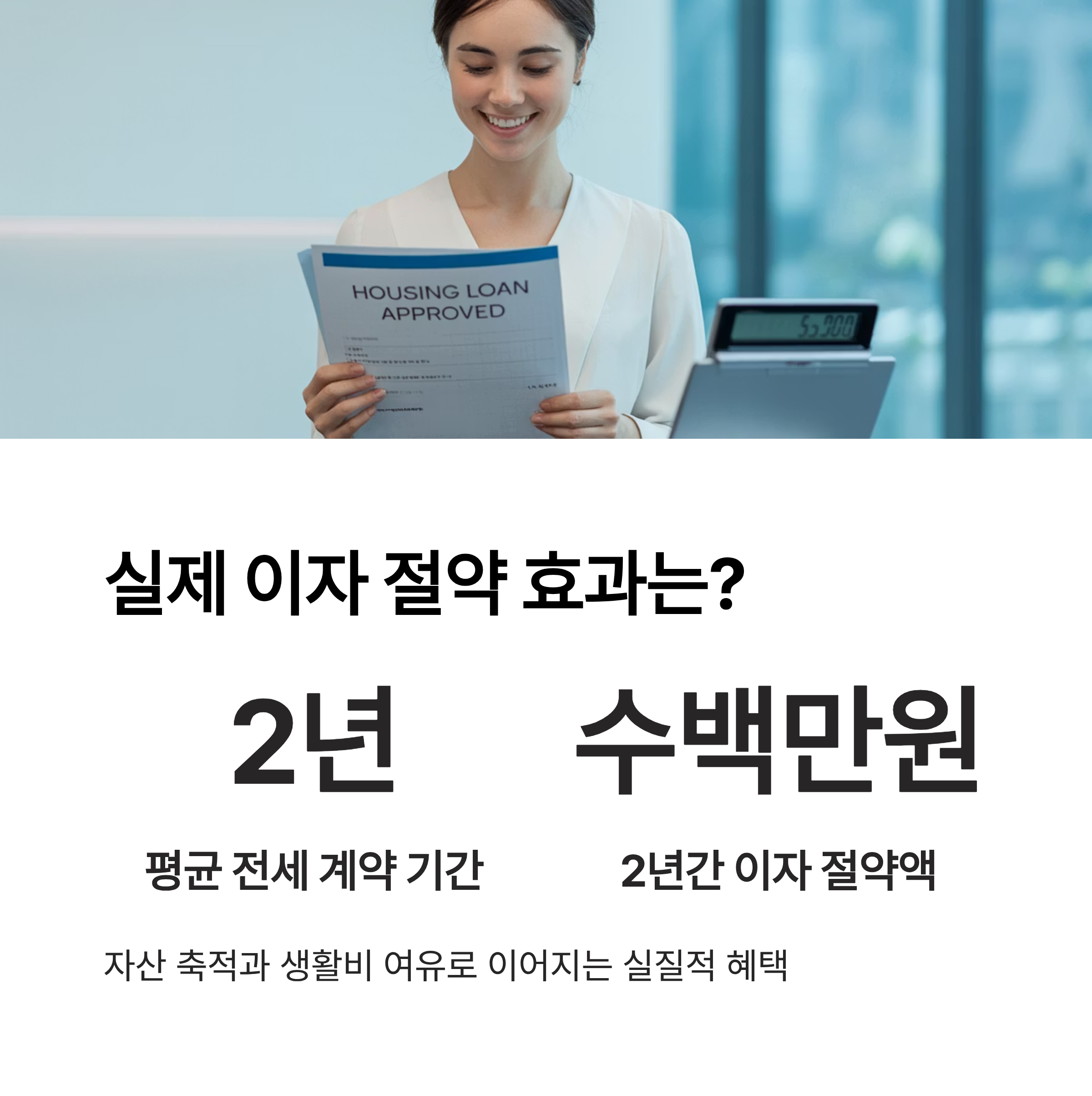 일반 은행 전세자금 대출과 비교할 때 이자 부담이 크게 줄어듭니다.