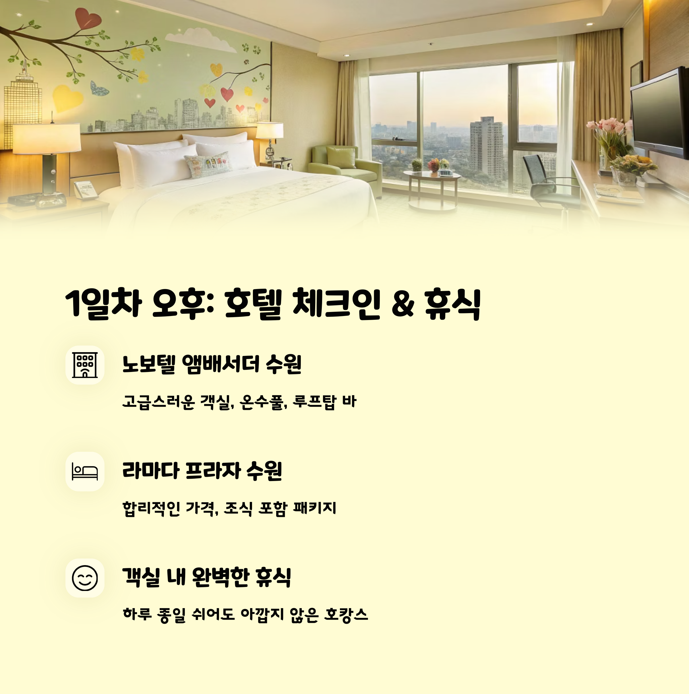 1일차 오후: 프라이빗 호텔 체크인 & 휴식