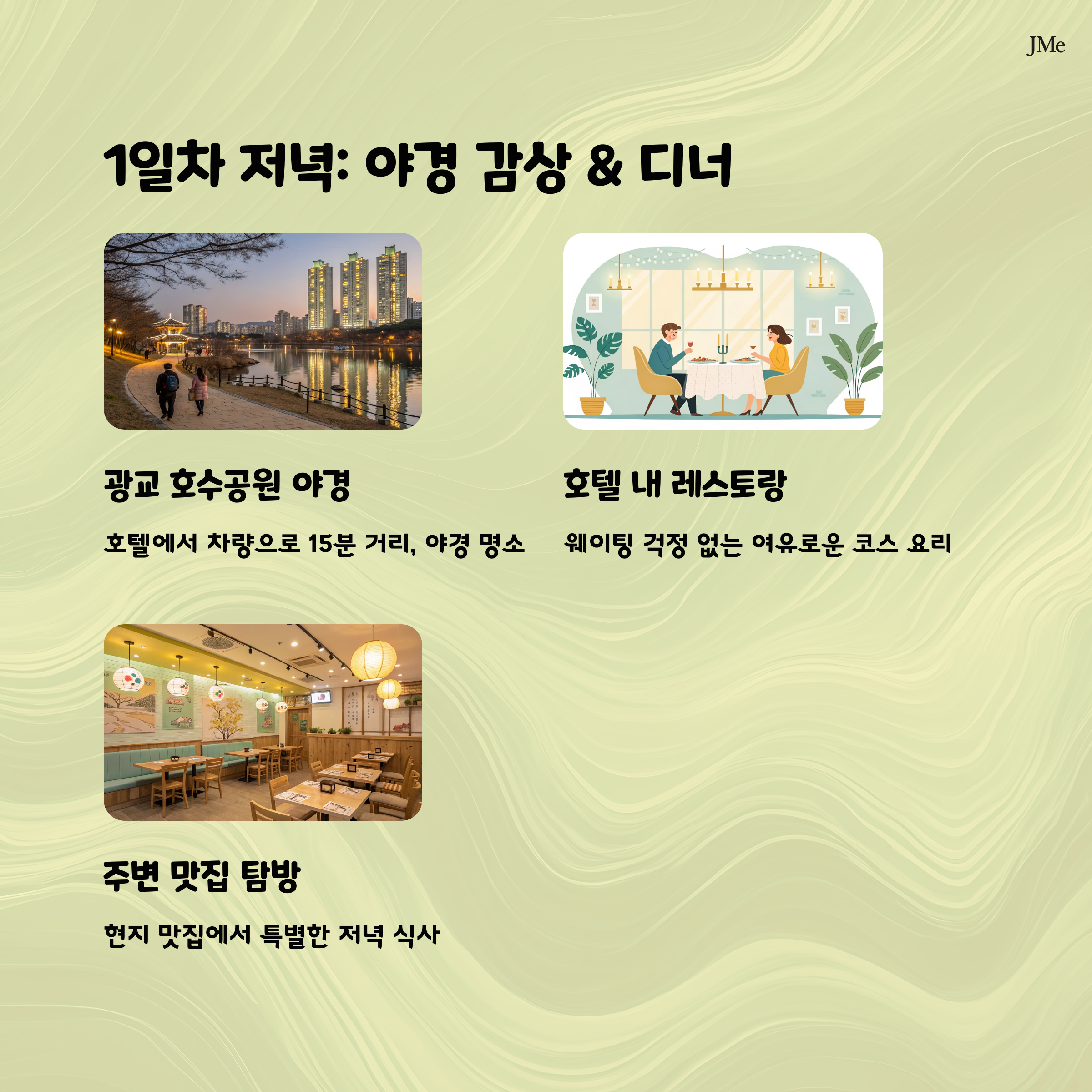 1일차 저녁: 야경 감상 + 호텔 디너 or 주변 맛집