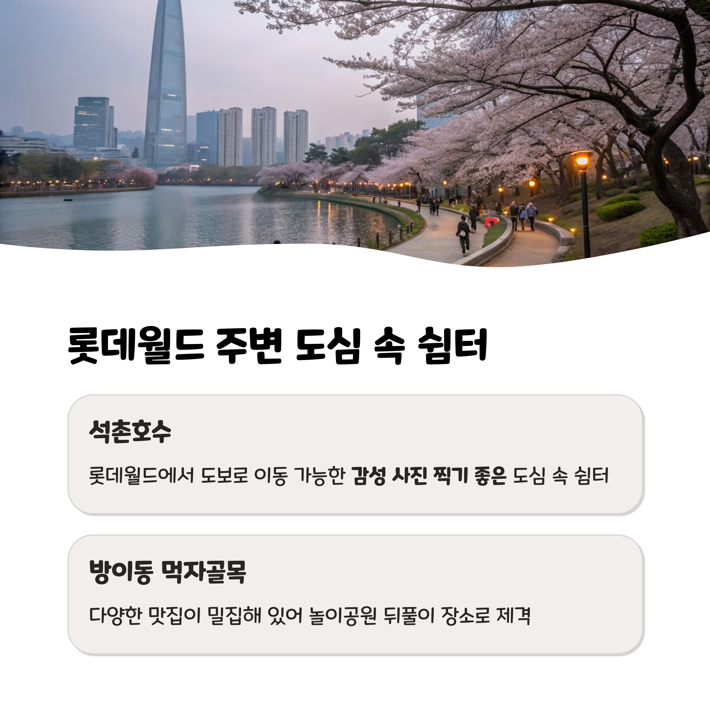 서울 도심 놀이공원의 여운을 이어갈 수 있는 석촌호수는