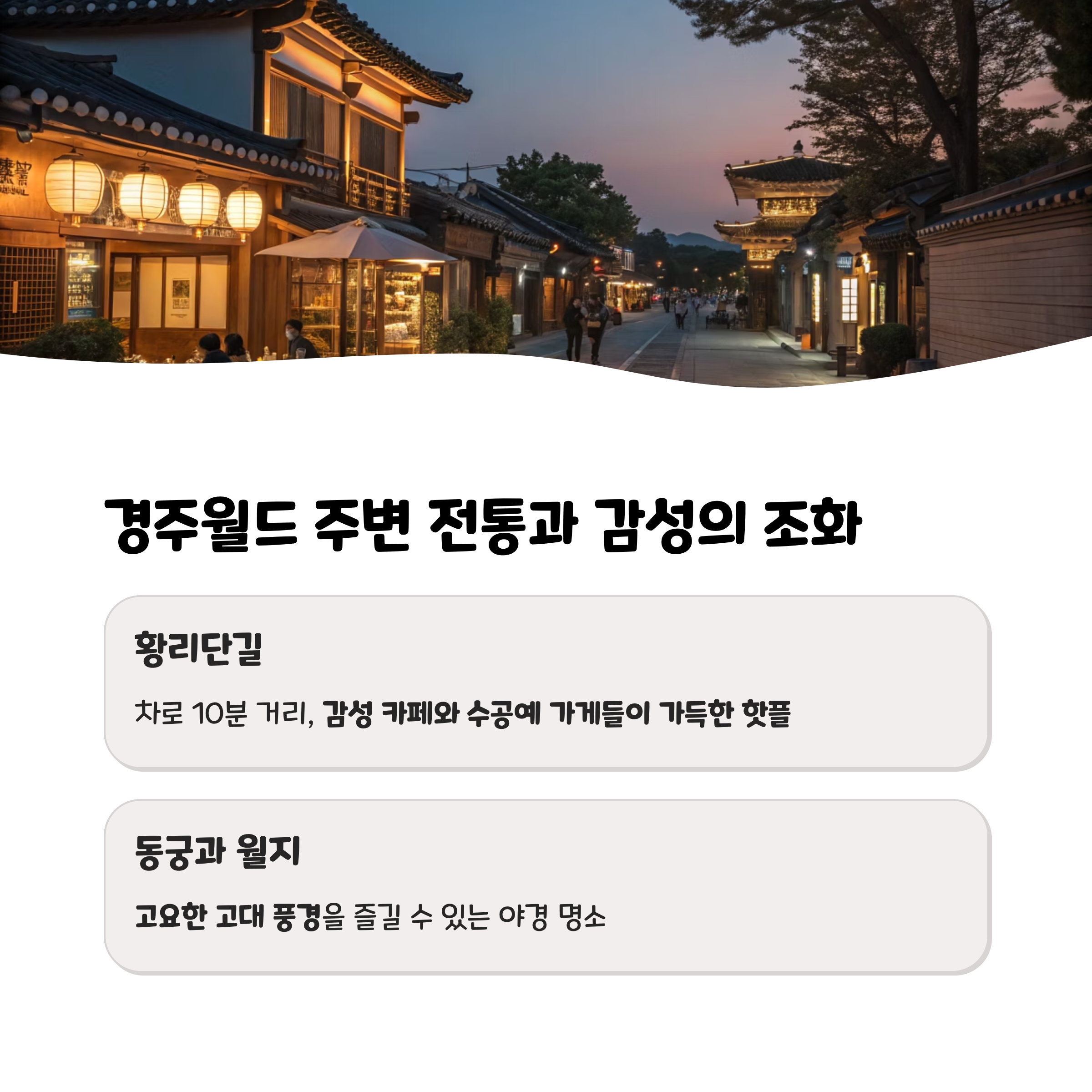 경주월드를 찾았다면 전통과 감성의 조화가 빛나는 두 곳을 꼭 들러보세요.