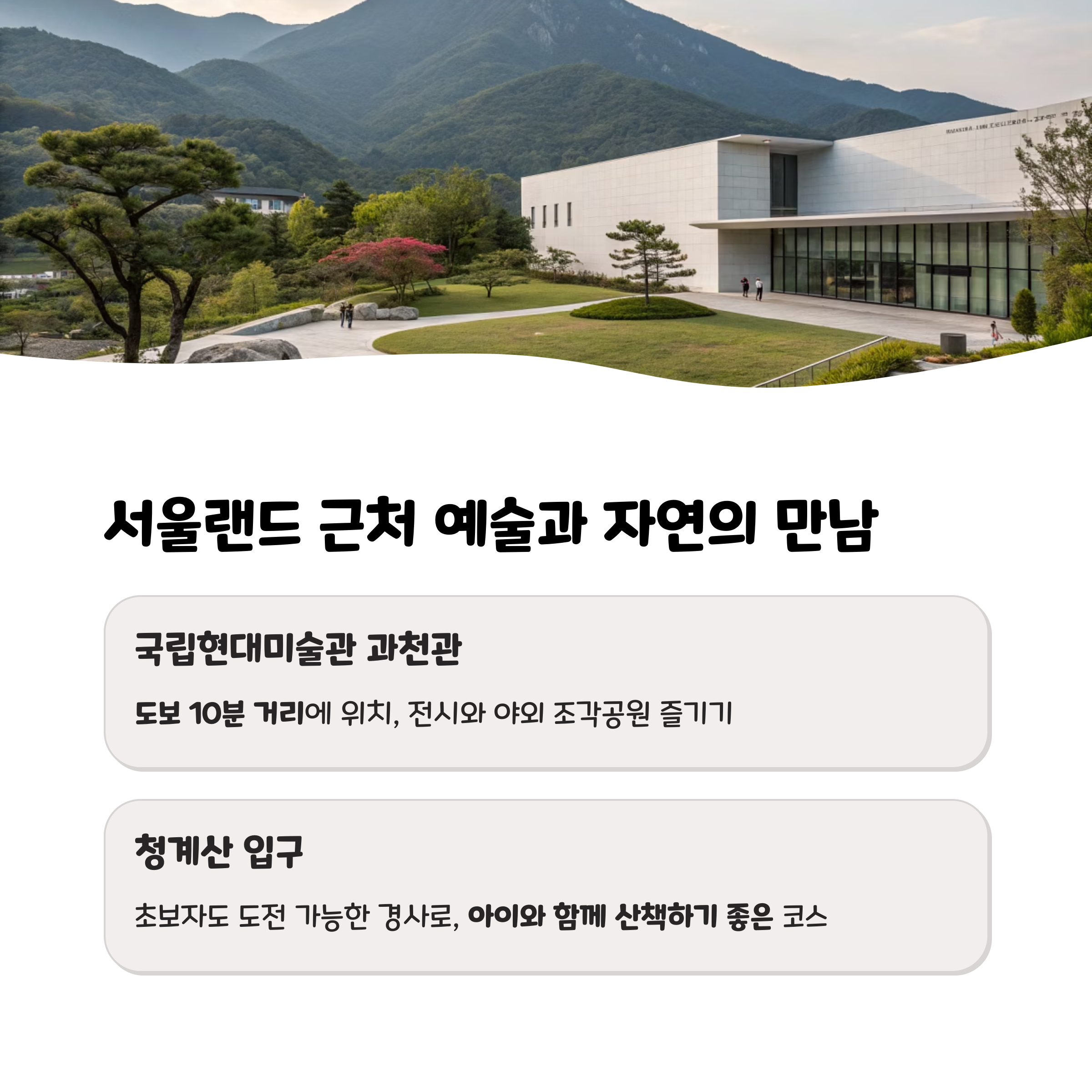 서울랜드에서의 하루가 끝났다면 예술과 자연이 어우러진 공간으로 이동해보세요.