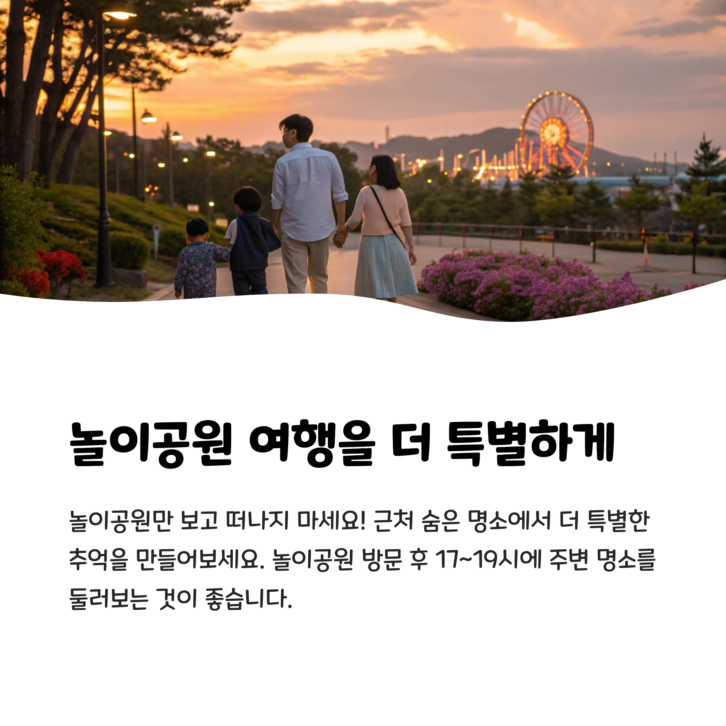 | 방문 시간대 | 놀이공원 이후 17~19시 추천 |