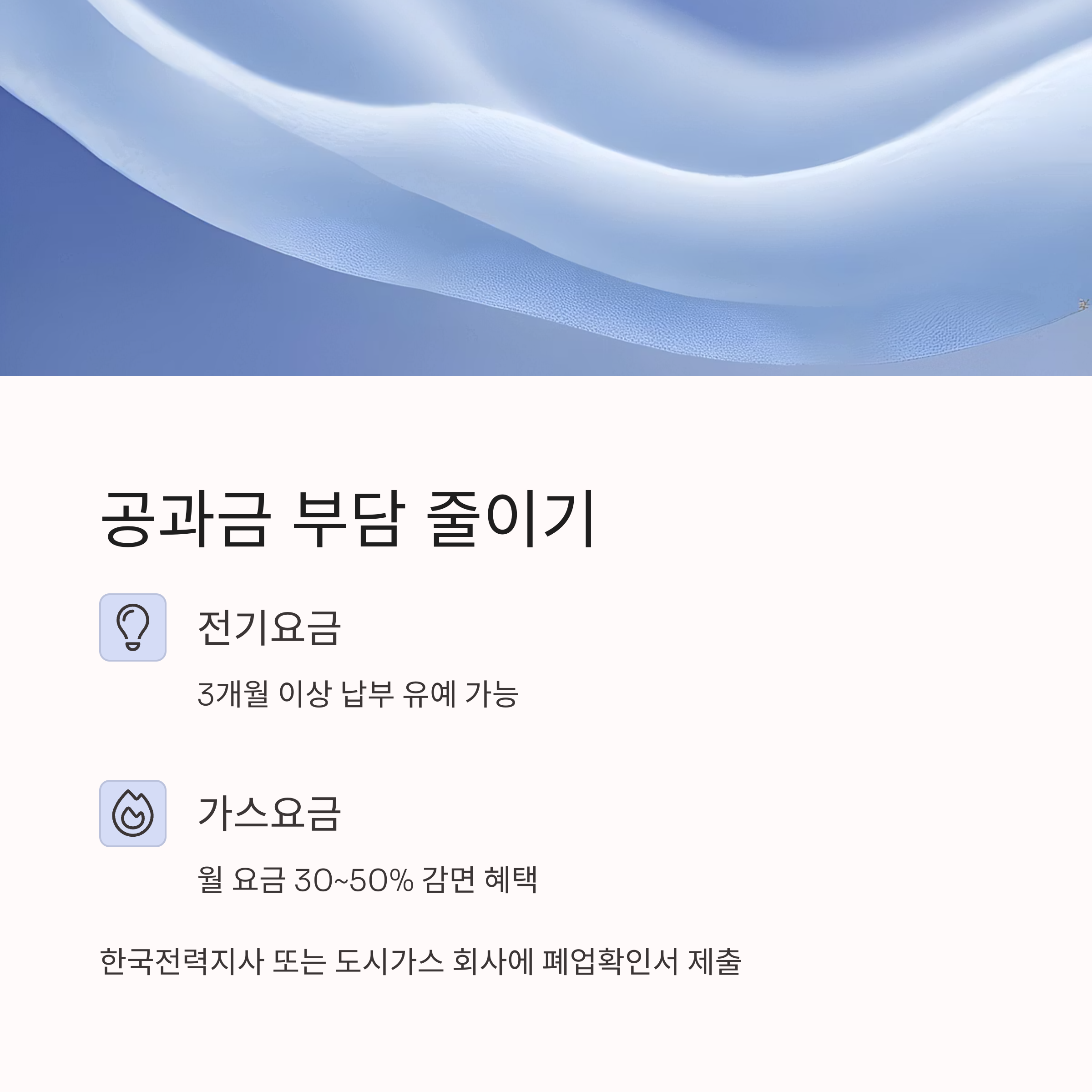 전기요금, 가스요금 등의 납부유예 또는 감면 혜택도 받을 수 있습니다