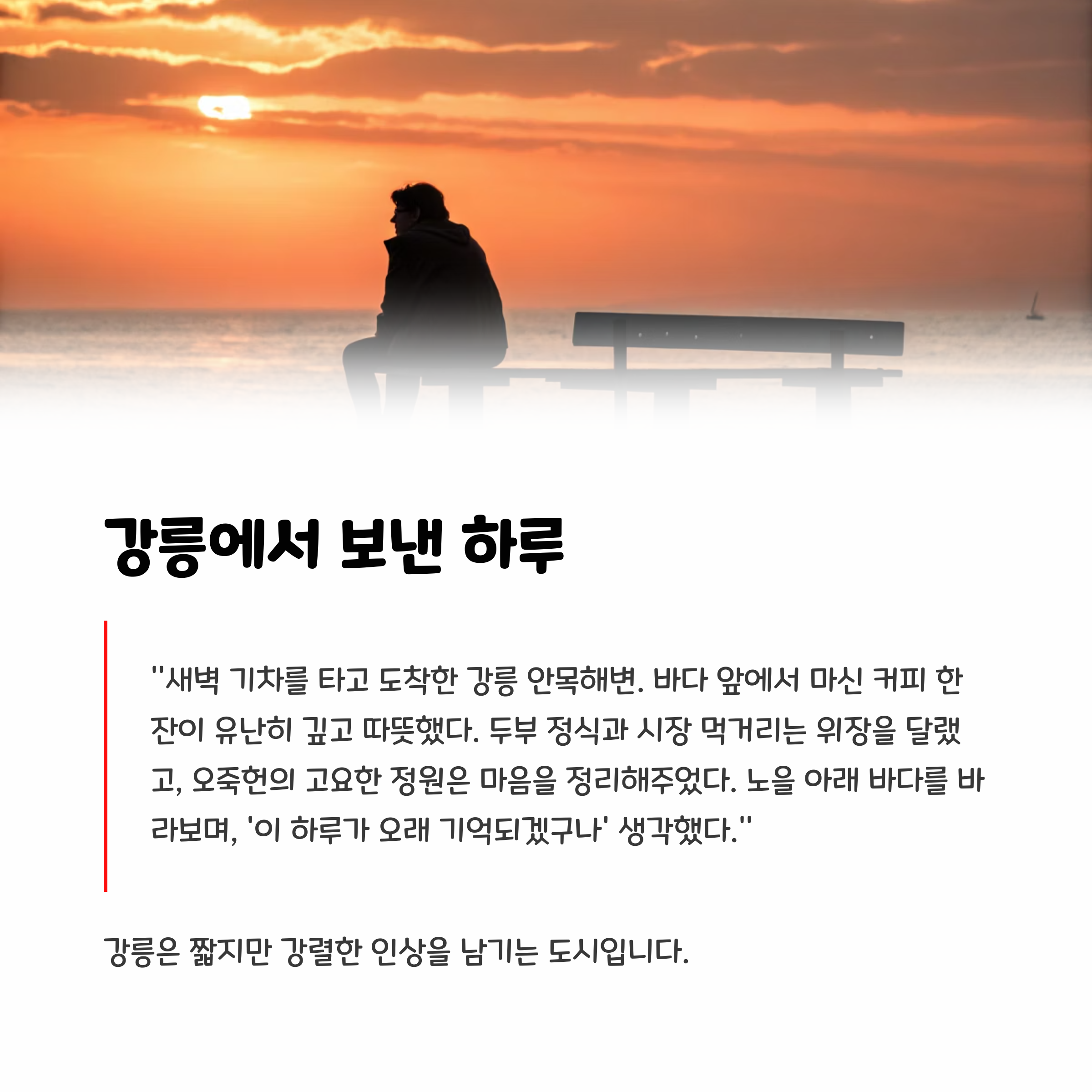 강릉은 짧지만 강렬한 인상을 남기는 도시입니다.
