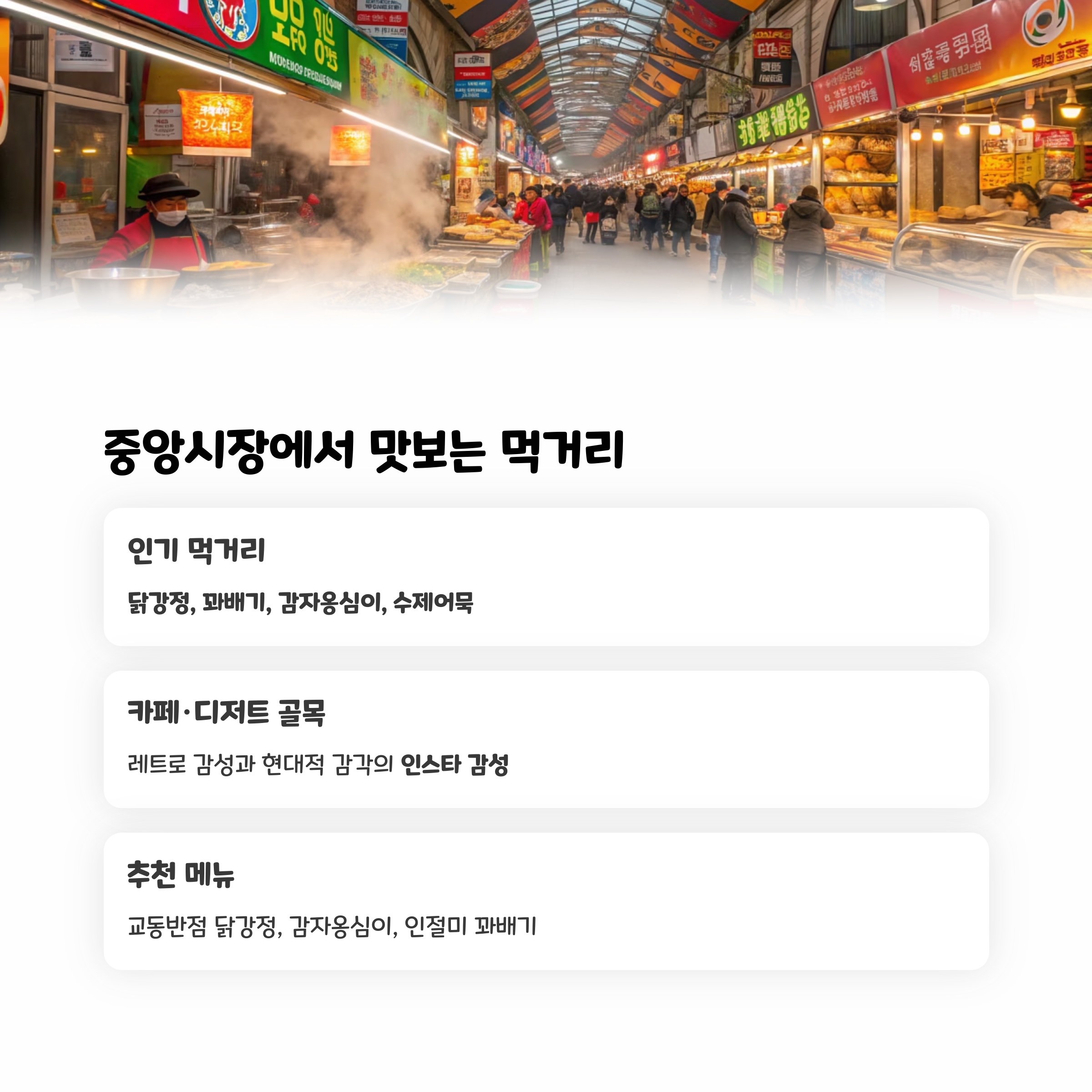 | 15:00 | 중앙시장 | 간식 & 쇼핑 |