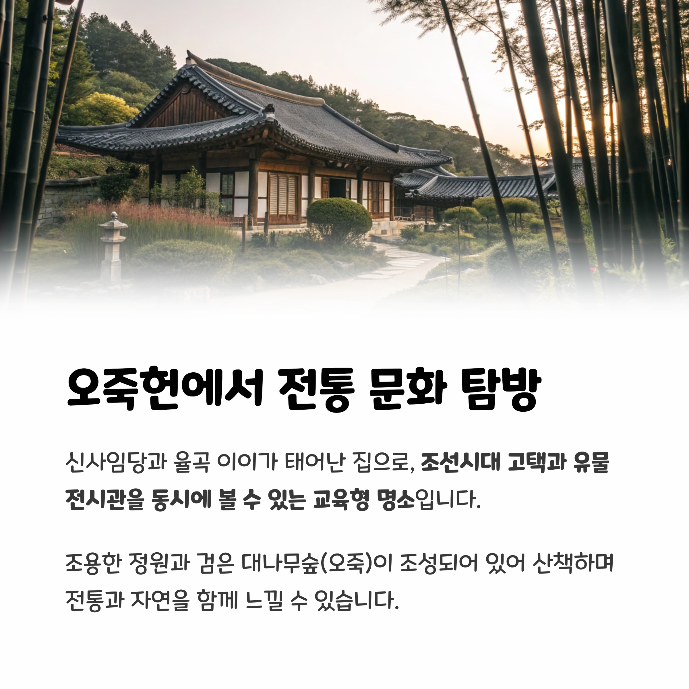 | 13:00 | 오죽헌 | 전통 문화 탐방 |