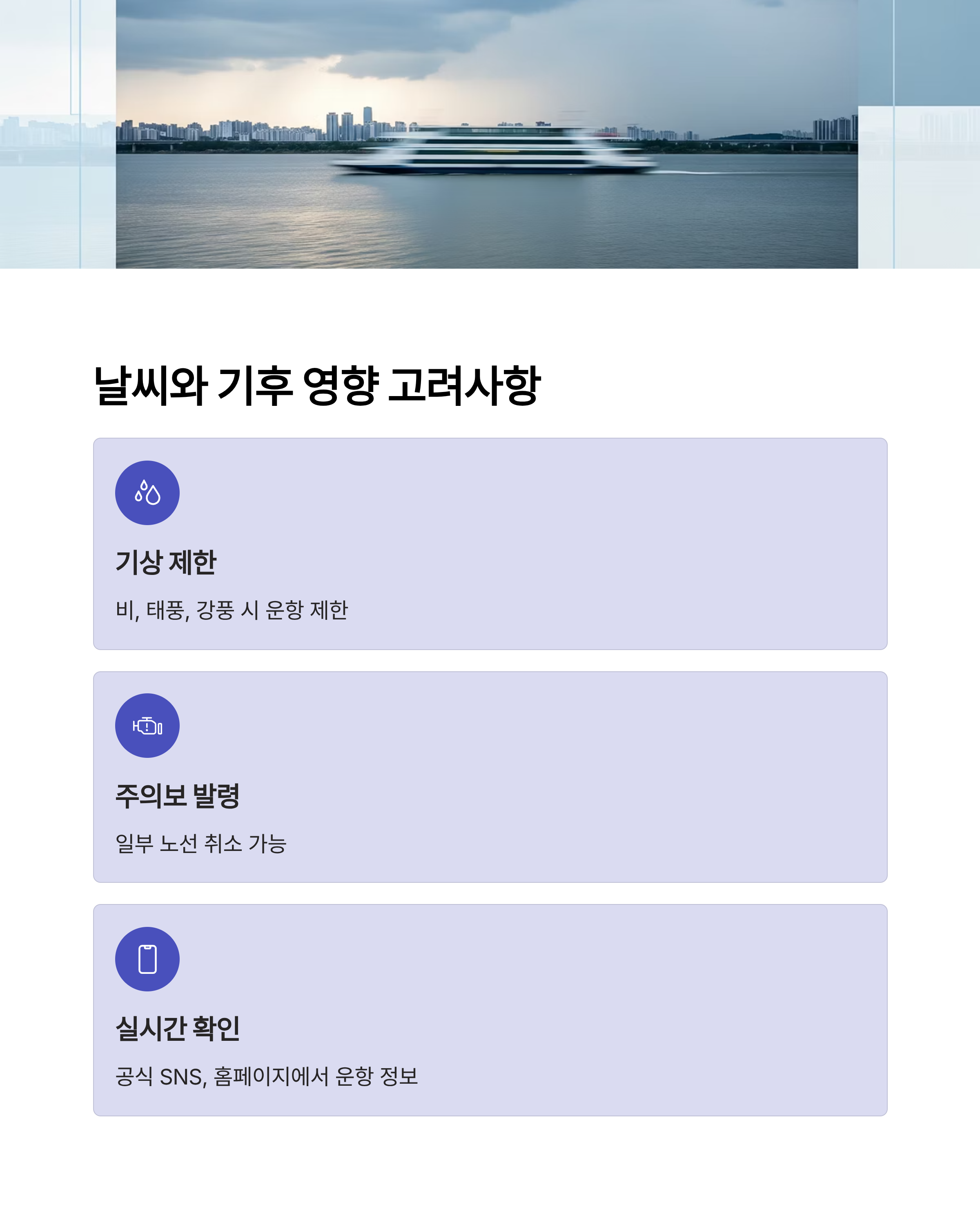 한강버스는 기상 상황에 따라 운항이 제한될 수 있어요.