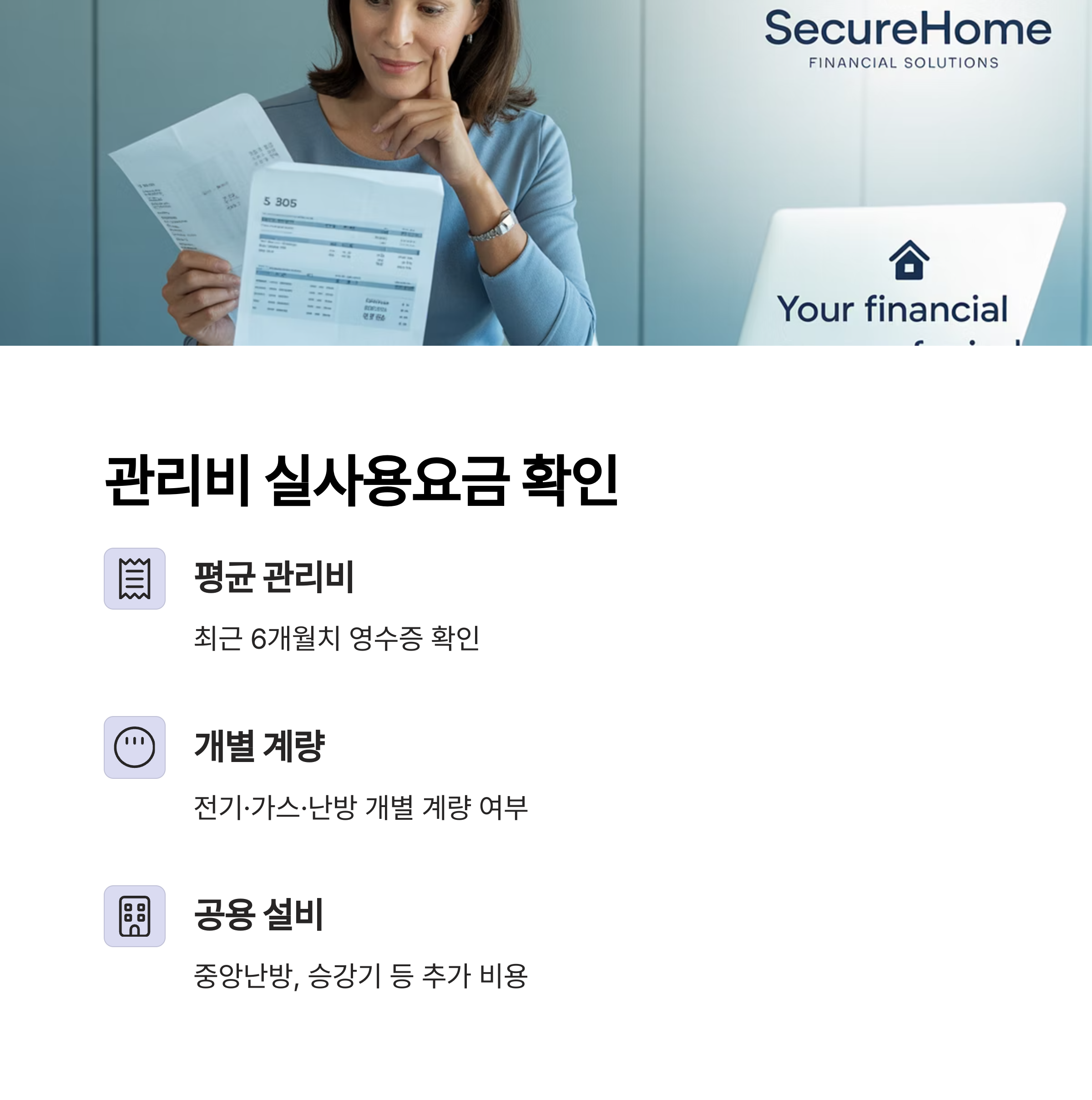 외형만 보고 계약했다가 매달 나가는 관리비에 놀라는 사례가 많습니다.