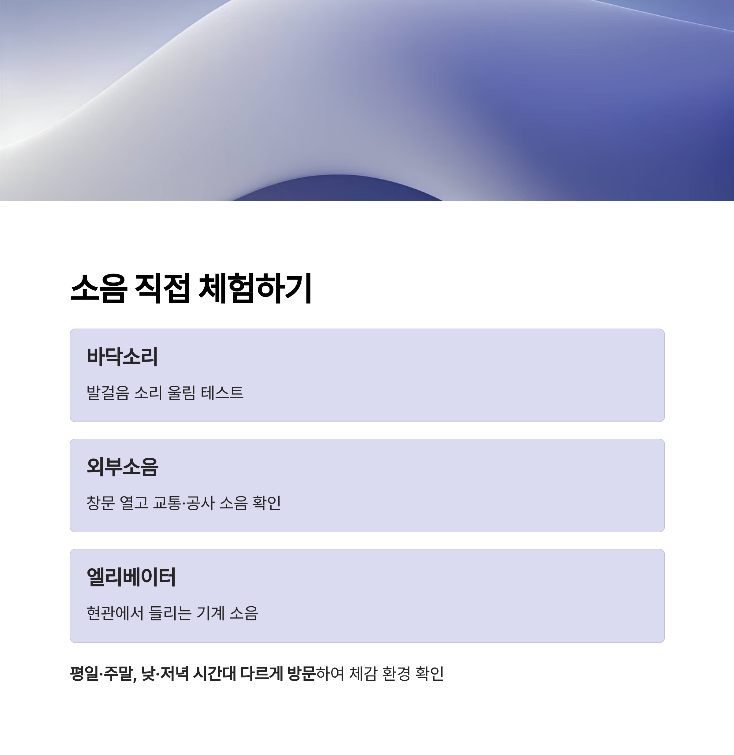 | 외부소음 | 창문 열고 교통소음·공사음 확인 |