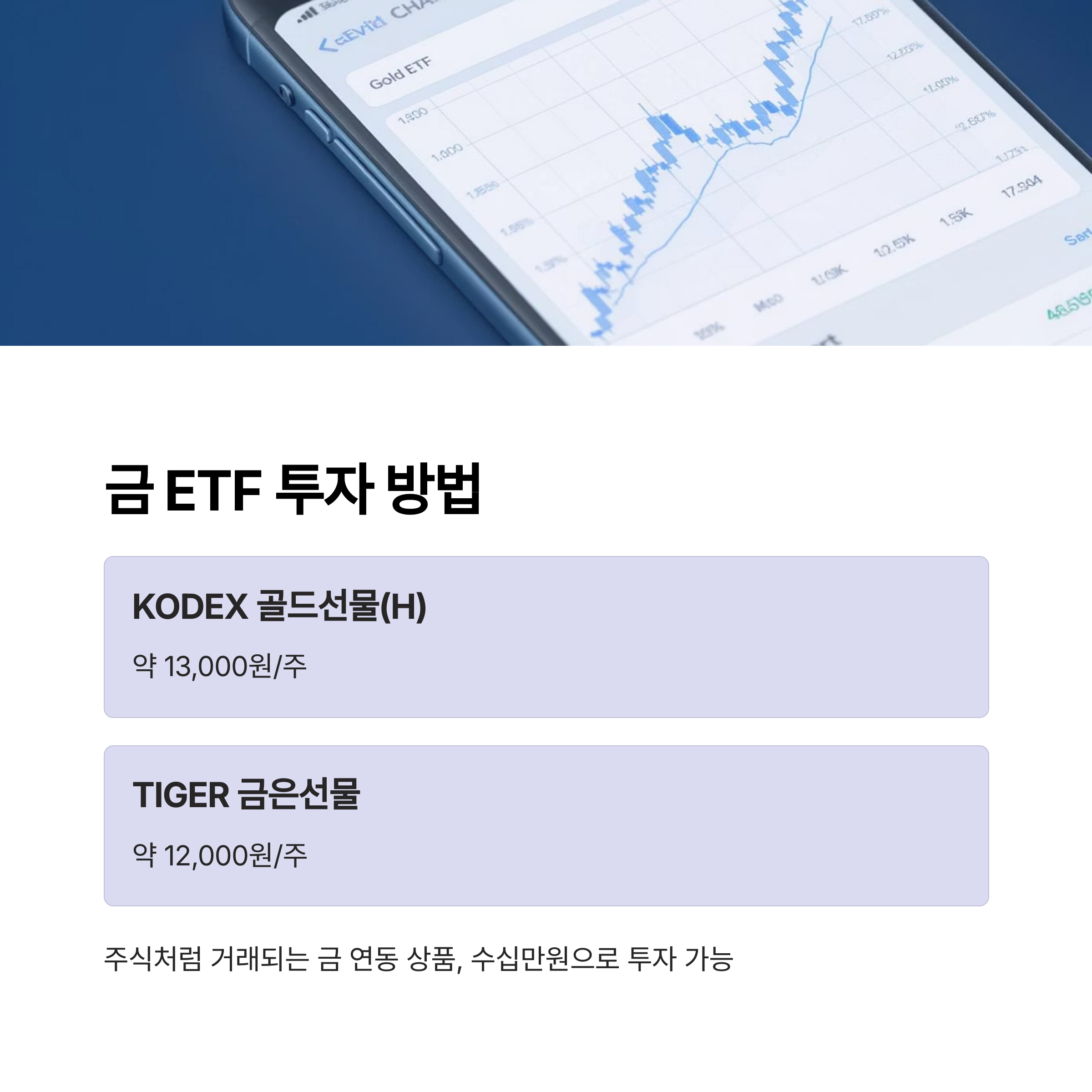 금 ETF(Exchange Traded Fund)는 주식처럼 거래되는 금 연동 상품입니다