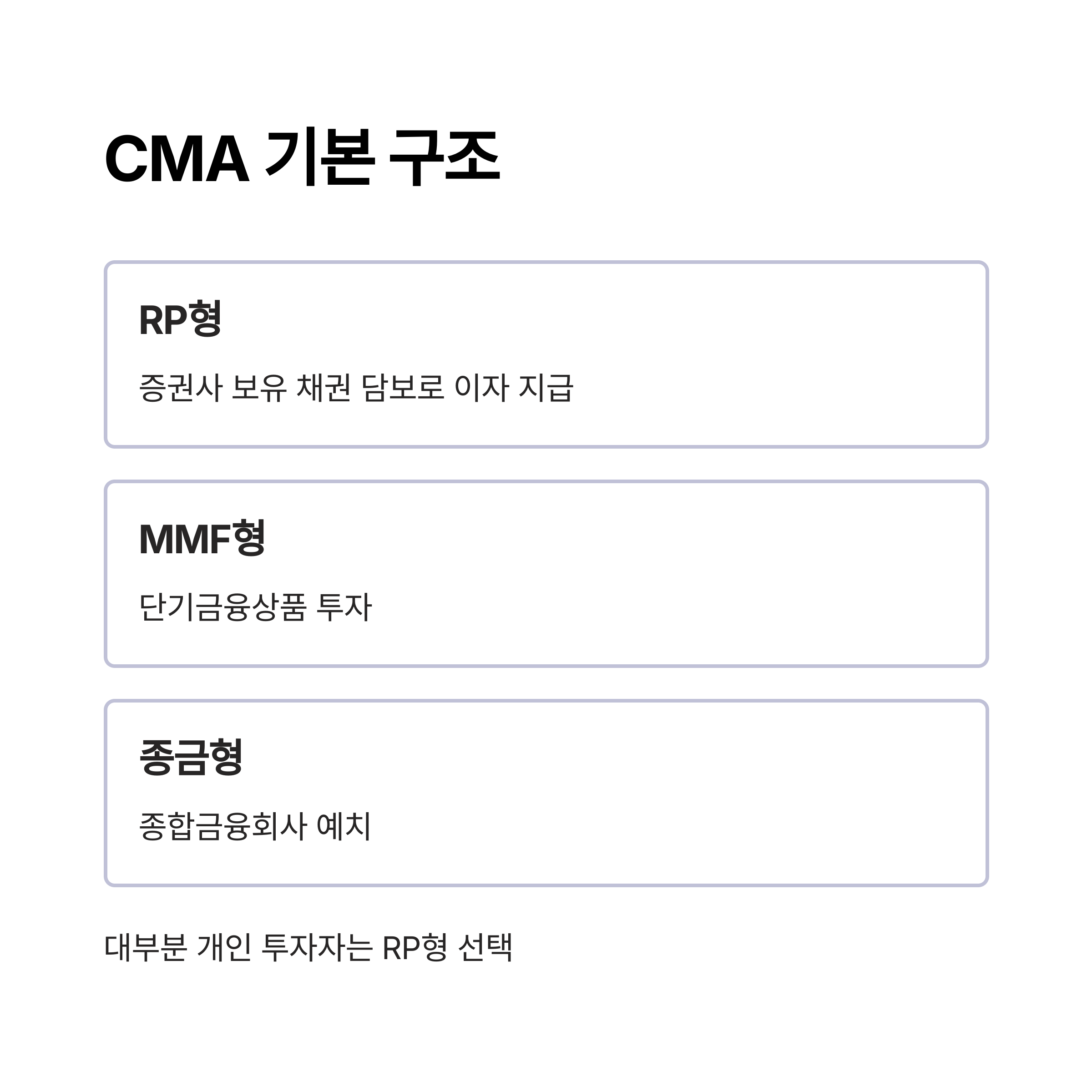 대부분의 개인 투자자는 ‘RP형 CMA’를 선택하는데,