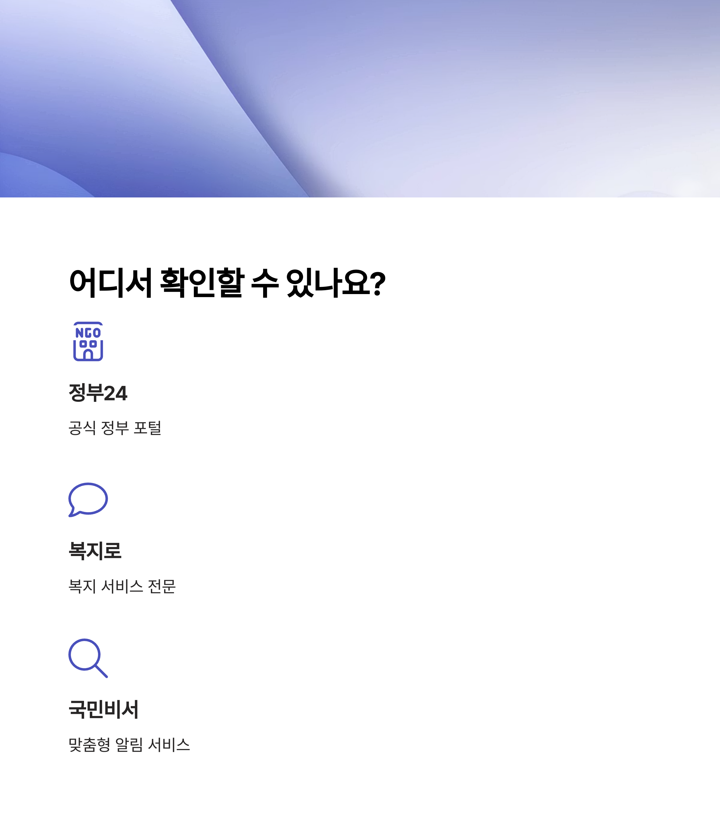 정부24, 복지로, 국민비서, 정부 지원금 통합포털 등에서