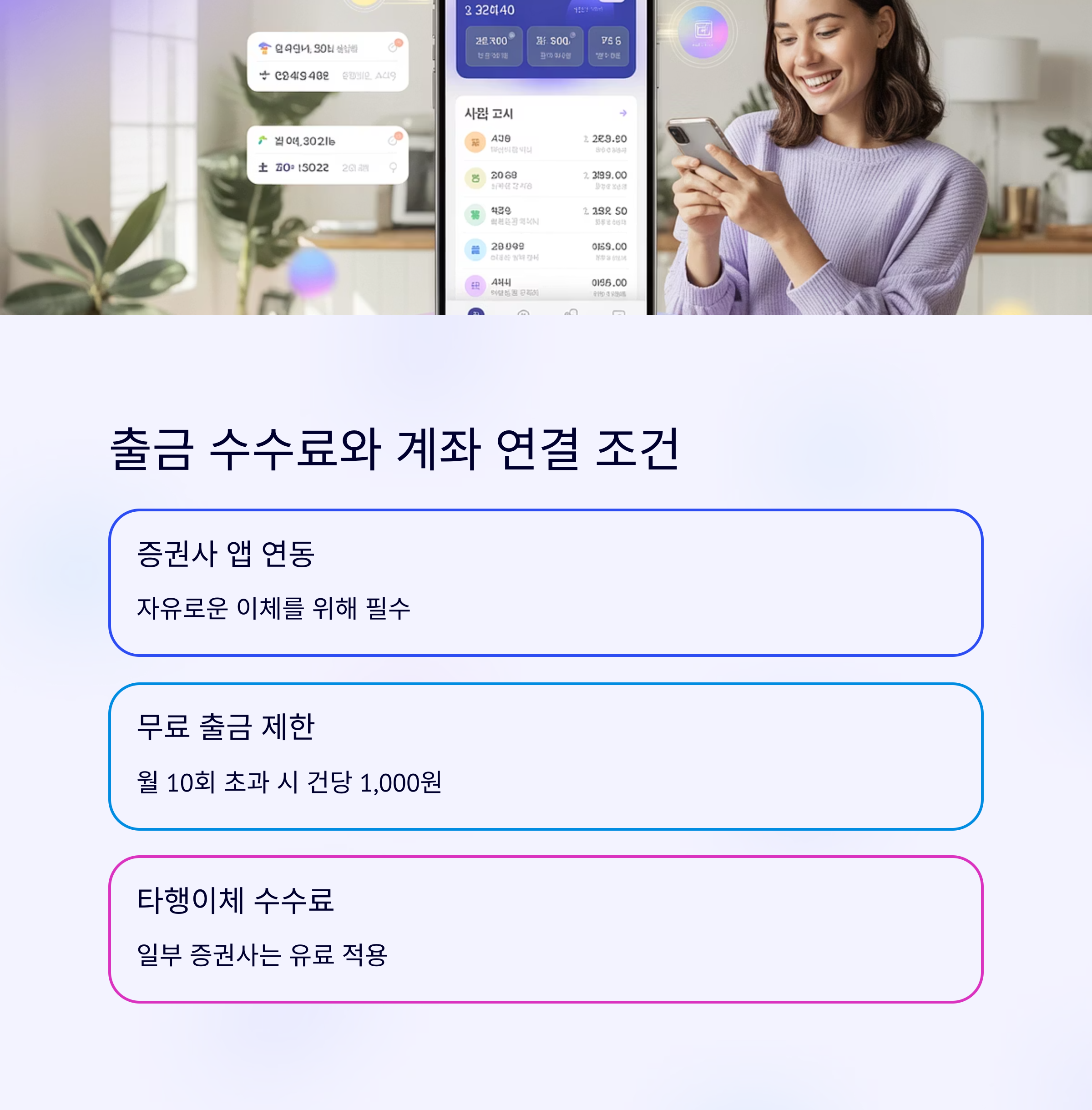 | 타행이체 수수료 | 일부 증권사 유료 적용 |